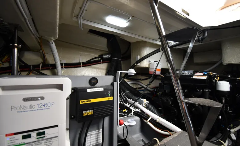 Freshwater / Great Lakes boat since new this vessel features Twin Mercruiser 6.2-litre 350-hp Gas Engines (only 391 original hours) and Mercruiser SeaCore Outdrives! Docking is a Breeze, Thanks to the Dockmate Hand-Held Joystick Remote Control, Which Allows Operation From Anywhere on the Boat, Mercury Joystick w/Skyhook Turns the Boat on a Dime and Holds it in Position When Needed. Notable features include but are not limited to the following: Air-Conditioning & Heat (2-Units, w/Remote Control), (1) Head (Vacuflush) w/Vanity/Sink/Stall Shower, Central Vacuum System, Kohler 7.5kw Generator (63 hours), Windlass Anchor w/All Chain Anchor Rode and NEW Stainless Anchor, Complete Electronics Package (Raymarine 260 Color Touchscreen Radar/Charplotter and Rear-Facing Camera, Raymarine Autopilot, Mercury Vessel View Engine Monitor and Multi-Function Display, Raymarine VHF Marine Radio w/External Speaker and Little Giant Antenna), WiFi through Vessel, Rockford Fosgate Integrated Bluetooth Stereo System w/Sirius & Pandora Radio, (3) Updated Flat-Screen TV's, Power Sunroof with Shade and Screen, Large Refrigerator/Freezer in Salon, Two Smaller Refrigerators in Cockpit Area, Microwave and Electric Cook Stove.