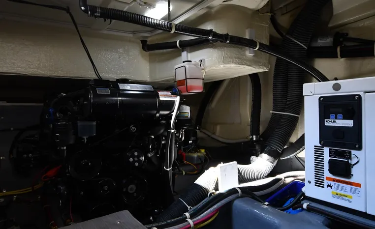 Freshwater / Great Lakes boat since new this vessel features Twin Mercruiser 6.2-litre 350-hp Gas Engines (only 391 original hours) and Mercruiser SeaCore Outdrives! Docking is a Breeze, Thanks to the Dockmate Hand-Held Joystick Remote Control, Which Allows Operation From Anywhere on the Boat, Mercury Joystick w/Skyhook Turns the Boat on a Dime and Holds it in Position When Needed. Notable features include but are not limited to the following: Air-Conditioning & Heat (2-Units, w/Remote Control), (1) Head (Vacuflush) w/Vanity/Sink/Stall Shower, Central Vacuum System, Kohler 7.5kw Generator (63 hours), Windlass Anchor w/All Chain Anchor Rode and NEW Stainless Anchor, Complete Electronics Package (Raymarine 260 Color Touchscreen Radar/Charplotter and Rear-Facing Camera, Raymarine Autopilot, Mercury Vessel View Engine Monitor and Multi-Function Display, Raymarine VHF Marine Radio w/External Speaker and Little Giant Antenna), WiFi through Vessel, Rockford Fosgate Integrated Bluetooth Stereo System w/Sirius & Pandora Radio, (3) Updated Flat-Screen TV's, Power Sunroof with Shade and Screen, Large Refrigerator/Freezer in Salon, Two Smaller Refrigerators in Cockpit Area, Microwave and Electric Cook Stove.