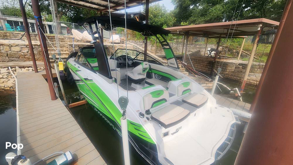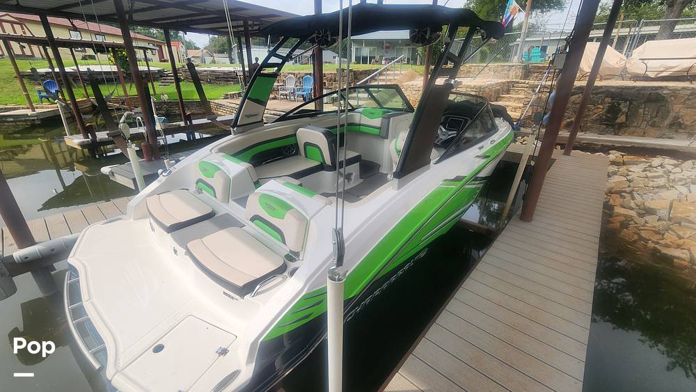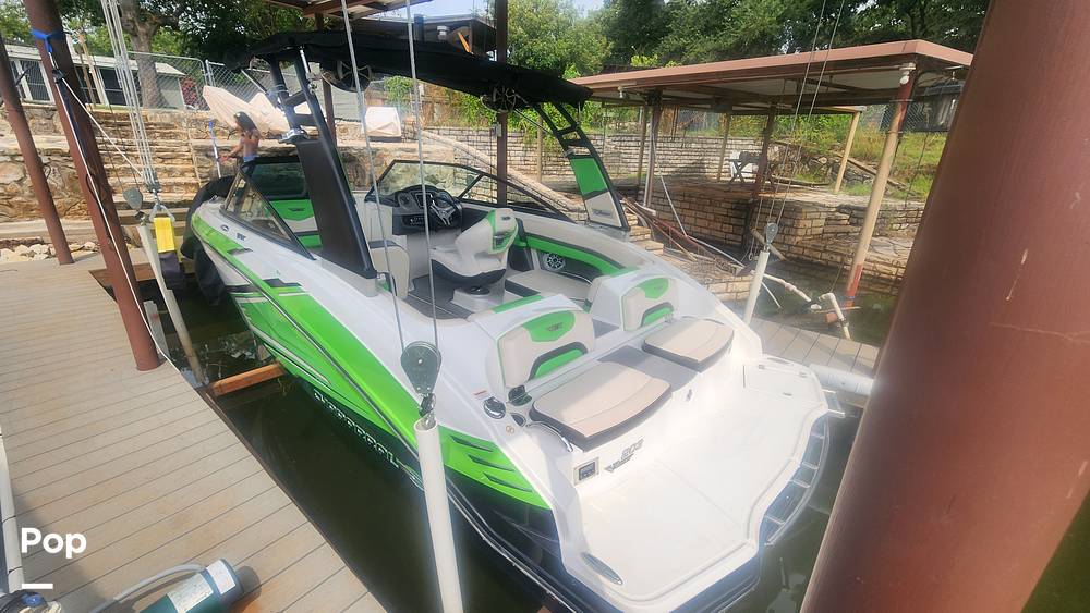 The Chaparral 203 VRX boasts a sleek and sporty design, featuring eye-catching graphics and a dynamic color scheme. The spacious cockpit is designed with comfort in mind, offering plush seating and ample storage for all your gear. The helm is equipped with intuitive controls with a digital display.