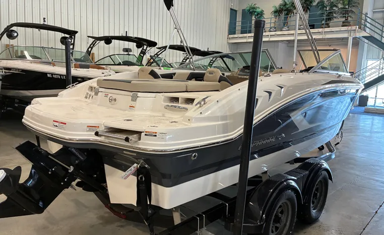 Sold new @ Pier 33 in 2017 this boat has lived on its factory trailer and has been garaged since its purchase! With very low freshwater only hours on the motor this little runabout/bowrider should provide a lifetime of fun for the family! The 21 Ski & Fish H2O combines the best of everything. Large casting platforms, abundant storage, and flexible seating cockpit design. Options you won't want to be without include snap-in carpet, a bow walk-thru door, fish finder, upgraded dash and a swim platform logo mat. Additionally, you can upgrade either one or both of the standard bucket seats to an ultra-comfort pedestal complete with a flip-up front bolster. Anglers will love the protected rod storage, standard trolling motor and 70-quart livewell.