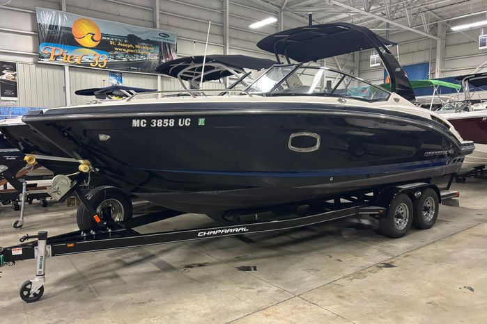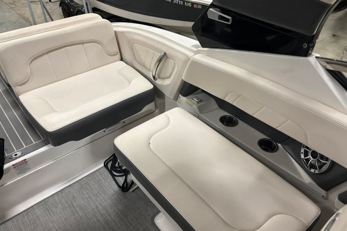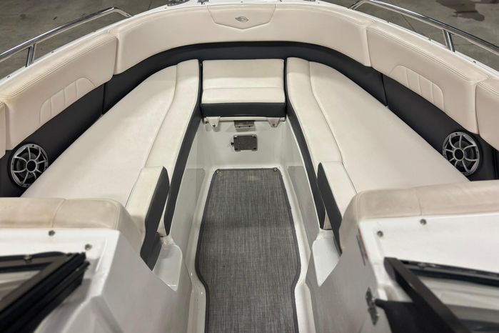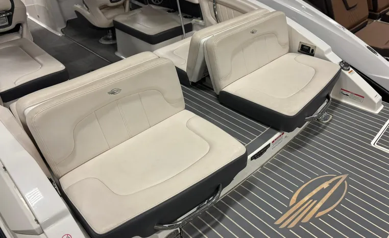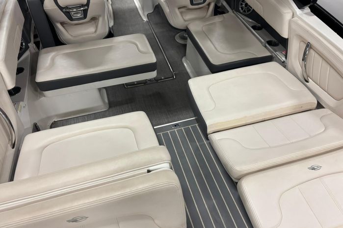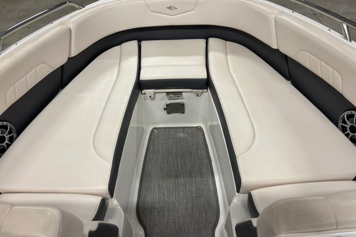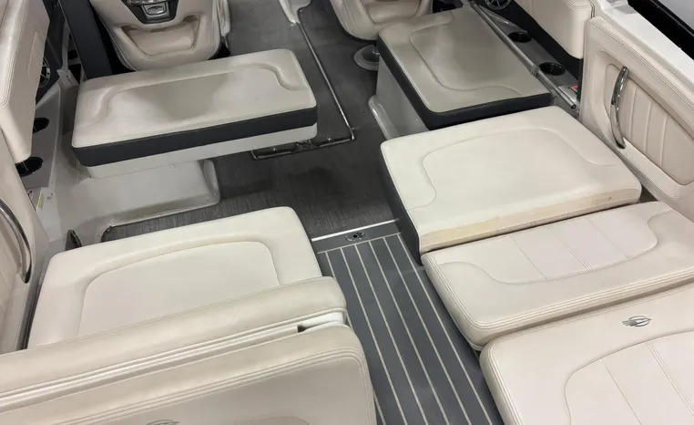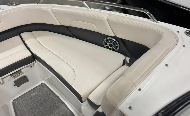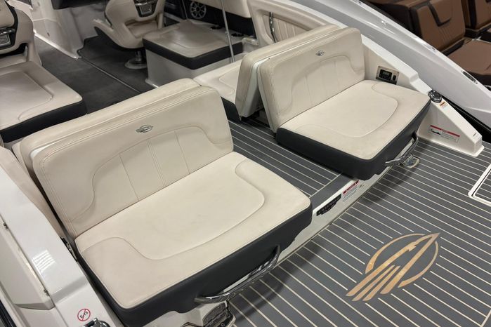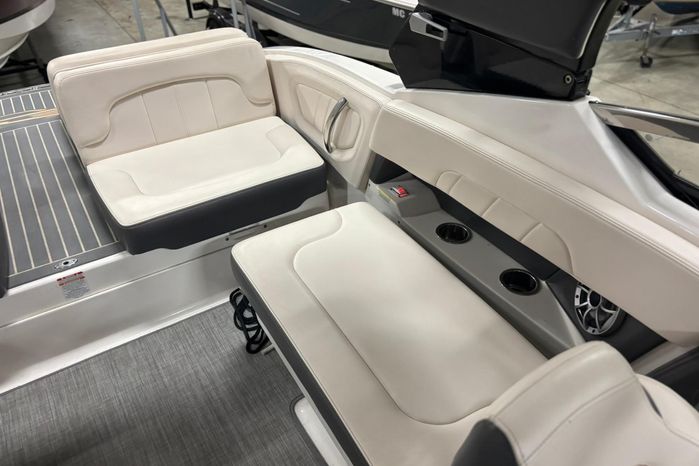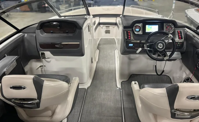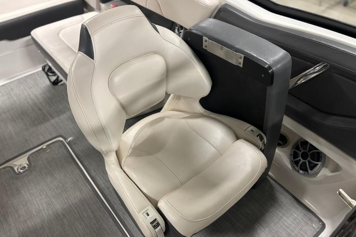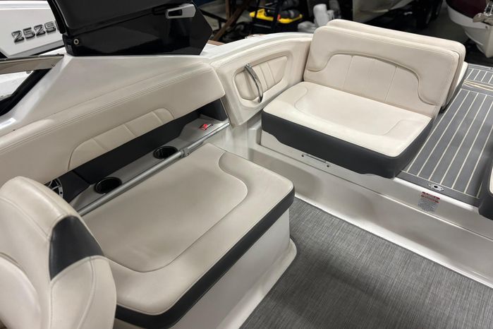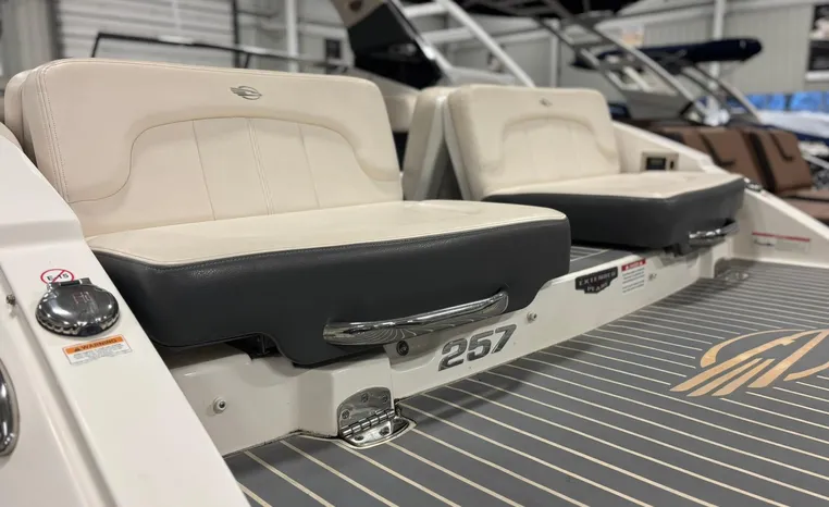 Step onboard the sensational 257 SSX and experience the perfect mix of performance, styling, comfort and fun! You will enjoy Great performance from Mercury's 6.2L 350 HP with Bravo III drive and Digital Throttle and Shift. Always boated on the fresh waters of Lake Michigan. A transitional lounge opens up all kinds of entertainment opportunities. Showcasing innovative dual lounges, the aft seats effortlessly "switch" from a performance-minded sport boat to the ultimate in sun worship. Aft, the center walk thru design is an open invitation for family fun. On display in our showroom now. This boat is equipped with these original optional features: