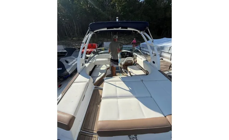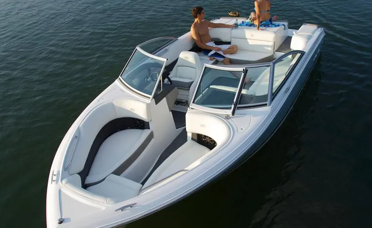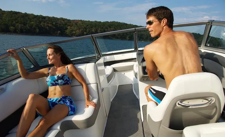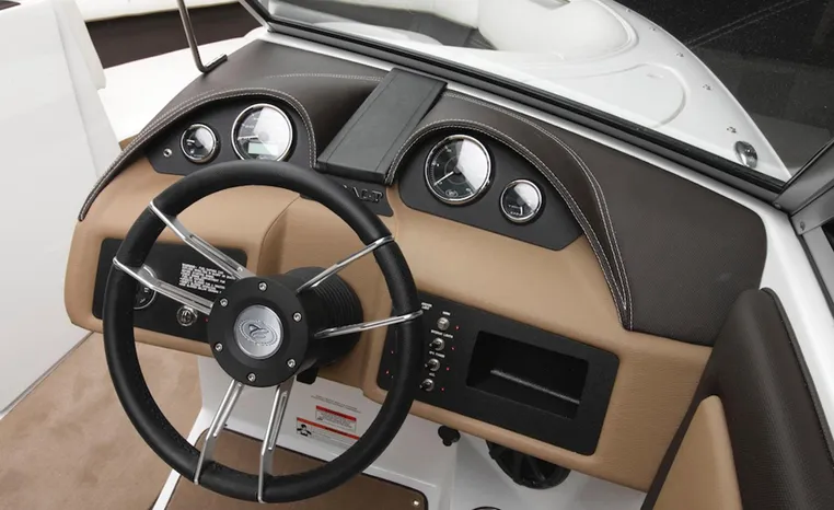 Mention the word “athletic” and the 220S steps up to the plate. Big fun – the extended running surface hull design provides explosive hole-shots, easy and extended zooming, the tight, high-speed turns skiers and boarders want – while affording you some remarkable efficiencies in fuel management. The interior seating configuration combines an oversized, all-in-one cockpit layout with the amazing on-water performance that has become synonymous with Cobalt. Your co-captain can face forward in the traditional manner, or flip the seat down easily transforming the cockpit into a massive arena-style seating arrangement. The choice is yours.