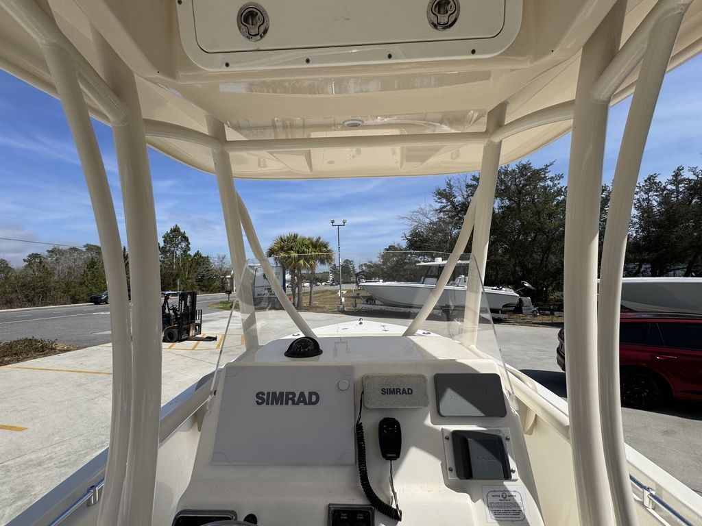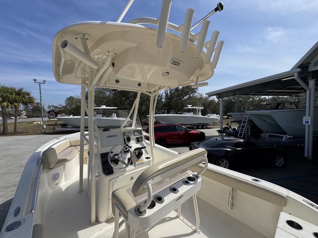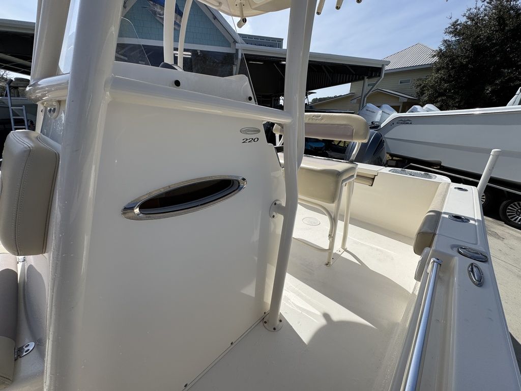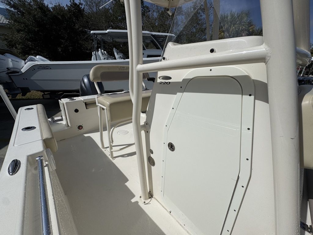 What makes the new 220 CC so great? Maybe it’s the sharp forward entry, large bow flare and variable deadrise hull that makes it ride better than a lot of bigger boats. Or it could be the high sides and deep interior freeboard that make it feel so secure and safe even in outsized seas. Then there’s the fact that it has an insulated fishbox that drains overboard and undergunwale rod storage, features that other boats its size can’t claim. And what about the hidden rear seat with flip up backrest and battery storage underneath? Put it all together and the new 220 CC is the most feature rich and big water ready 22 footer out there.