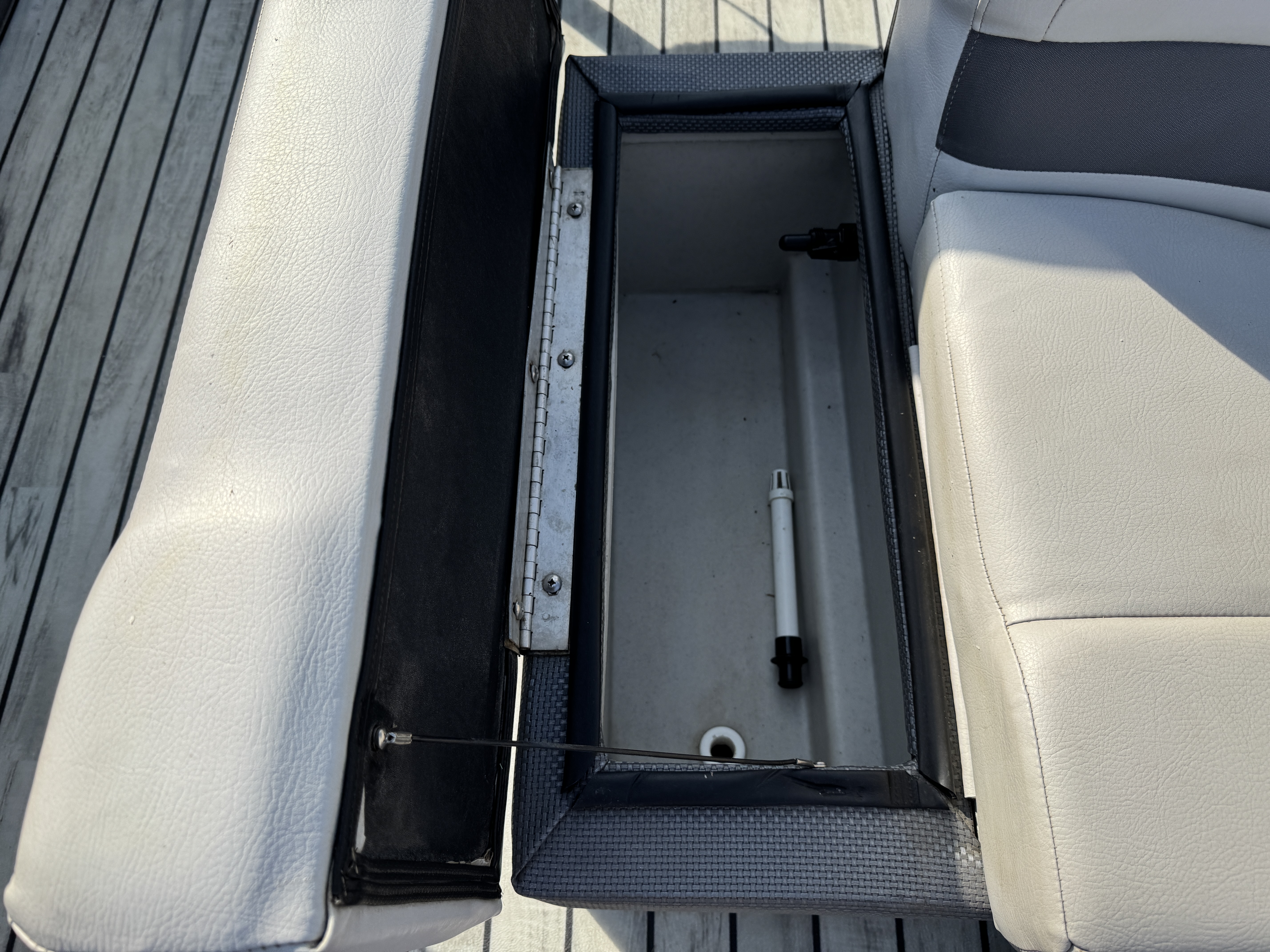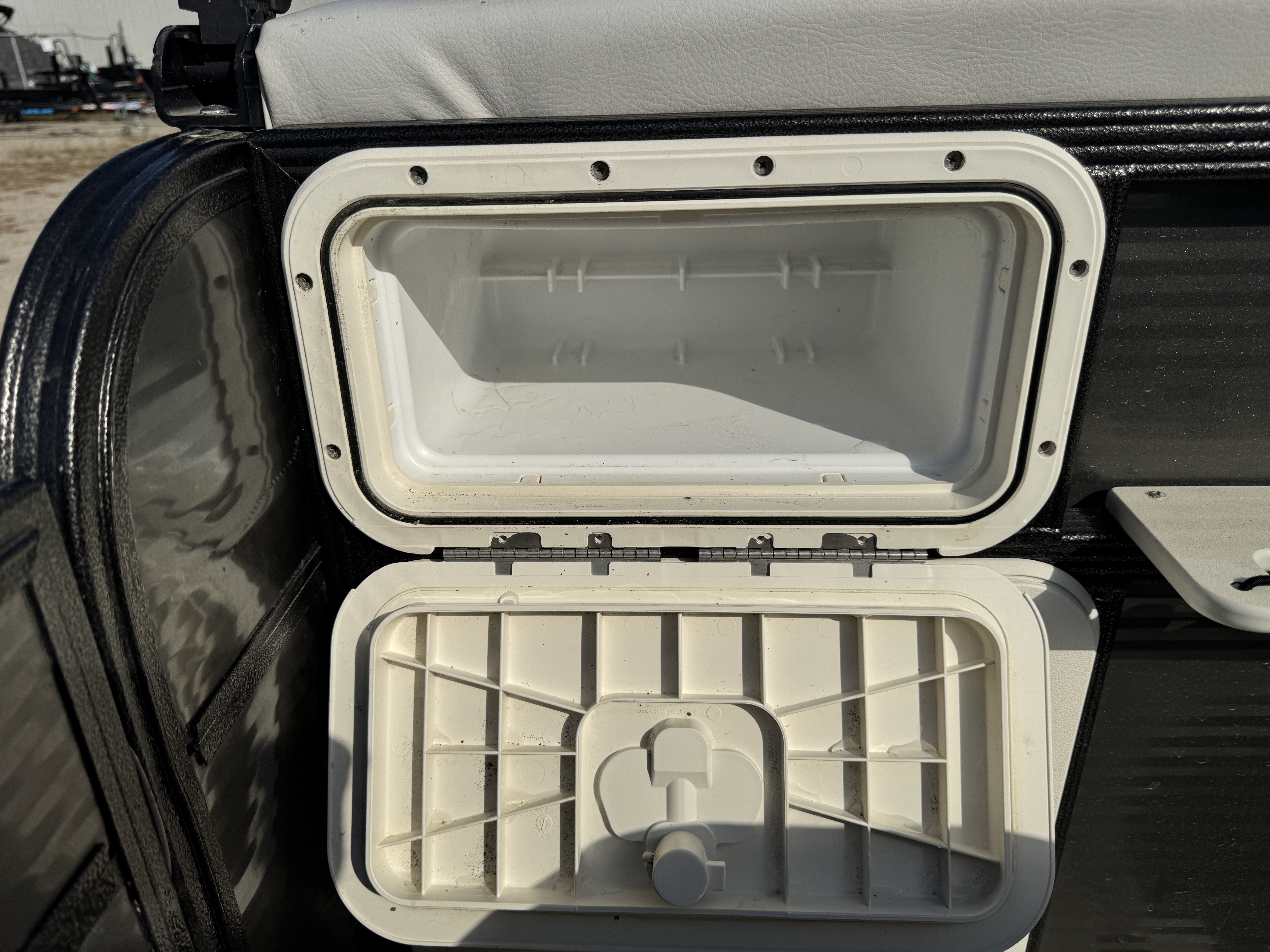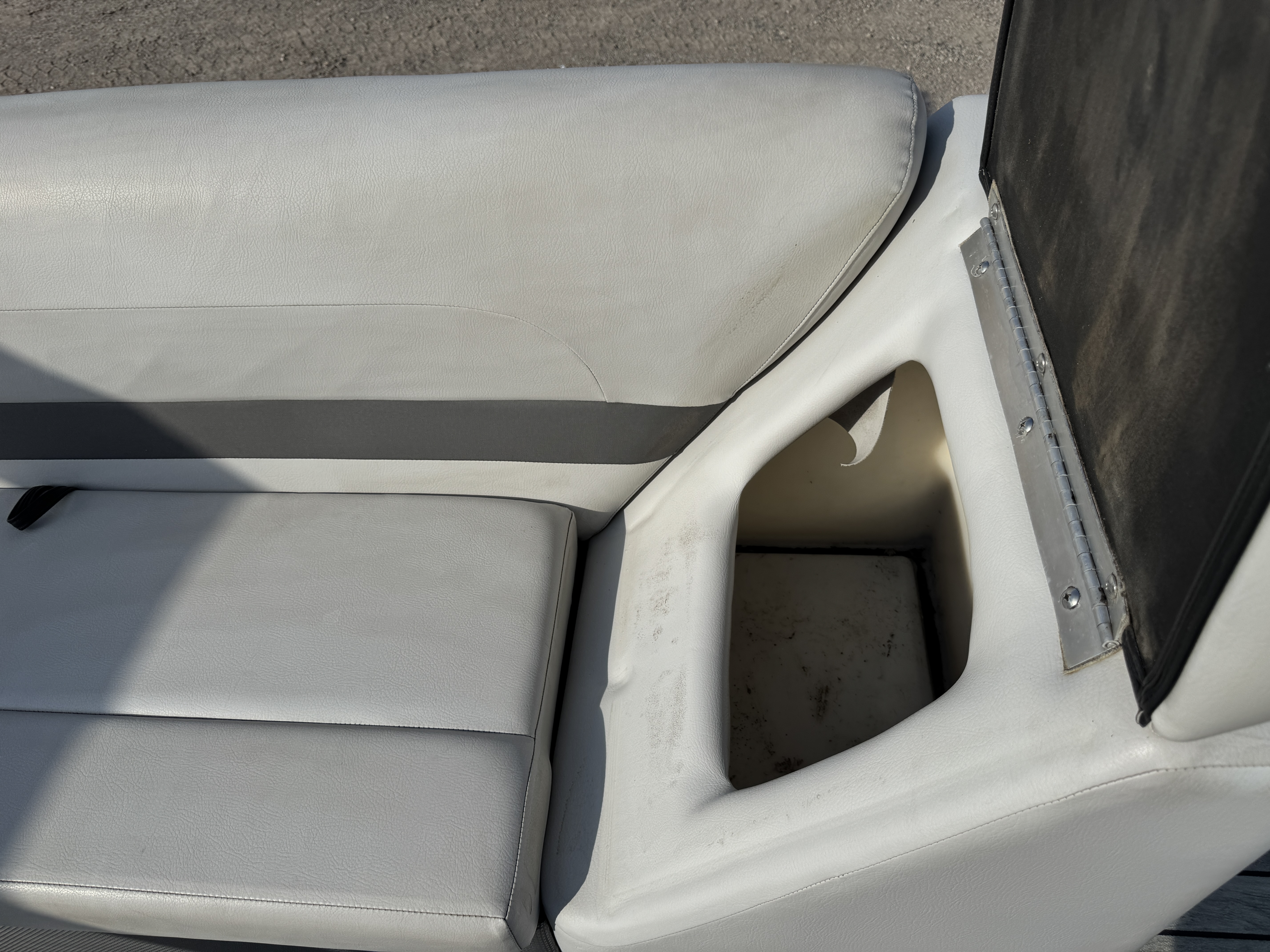 The front 2 fishing seats have mini consoles in front of them with item trays, a