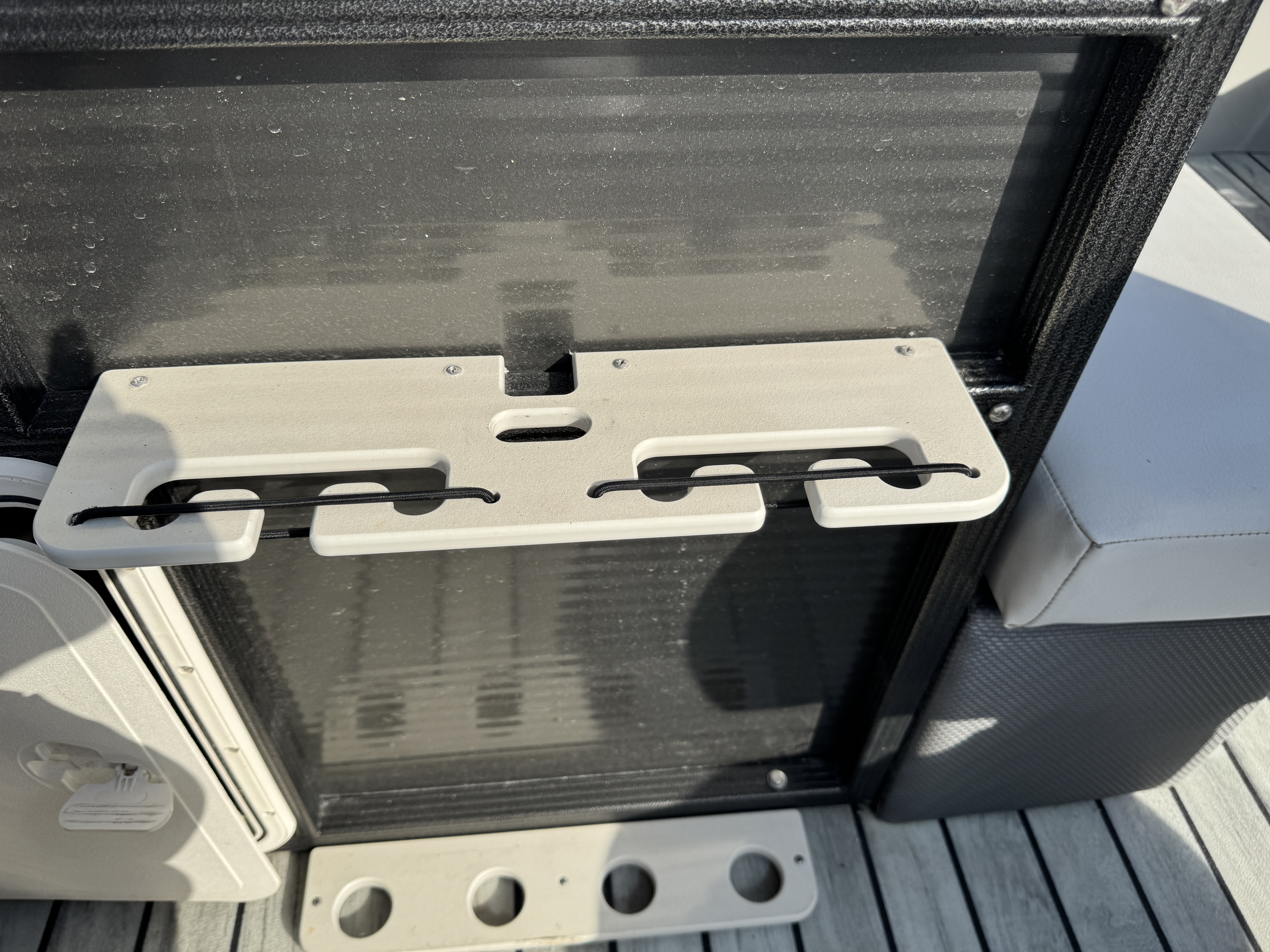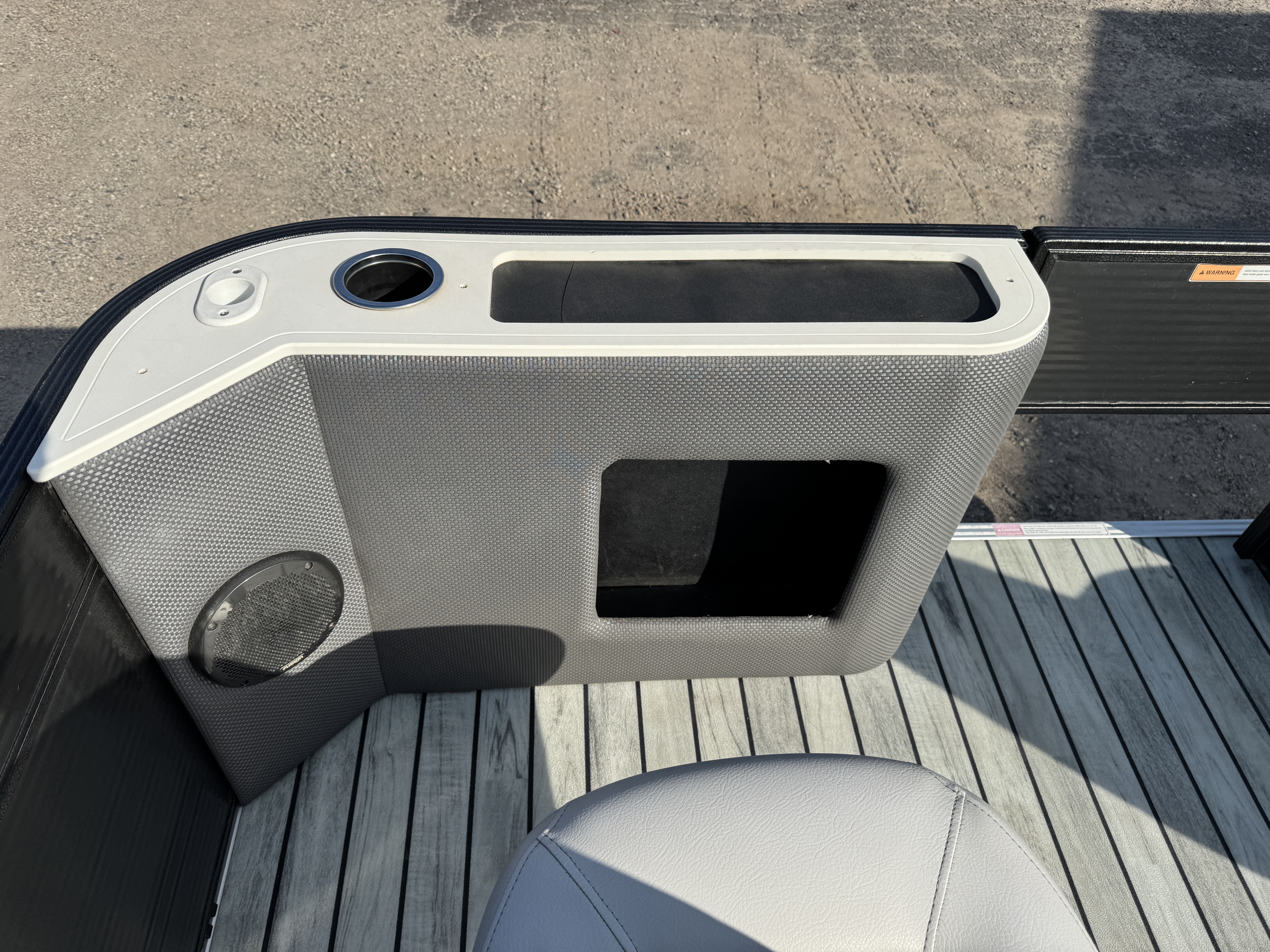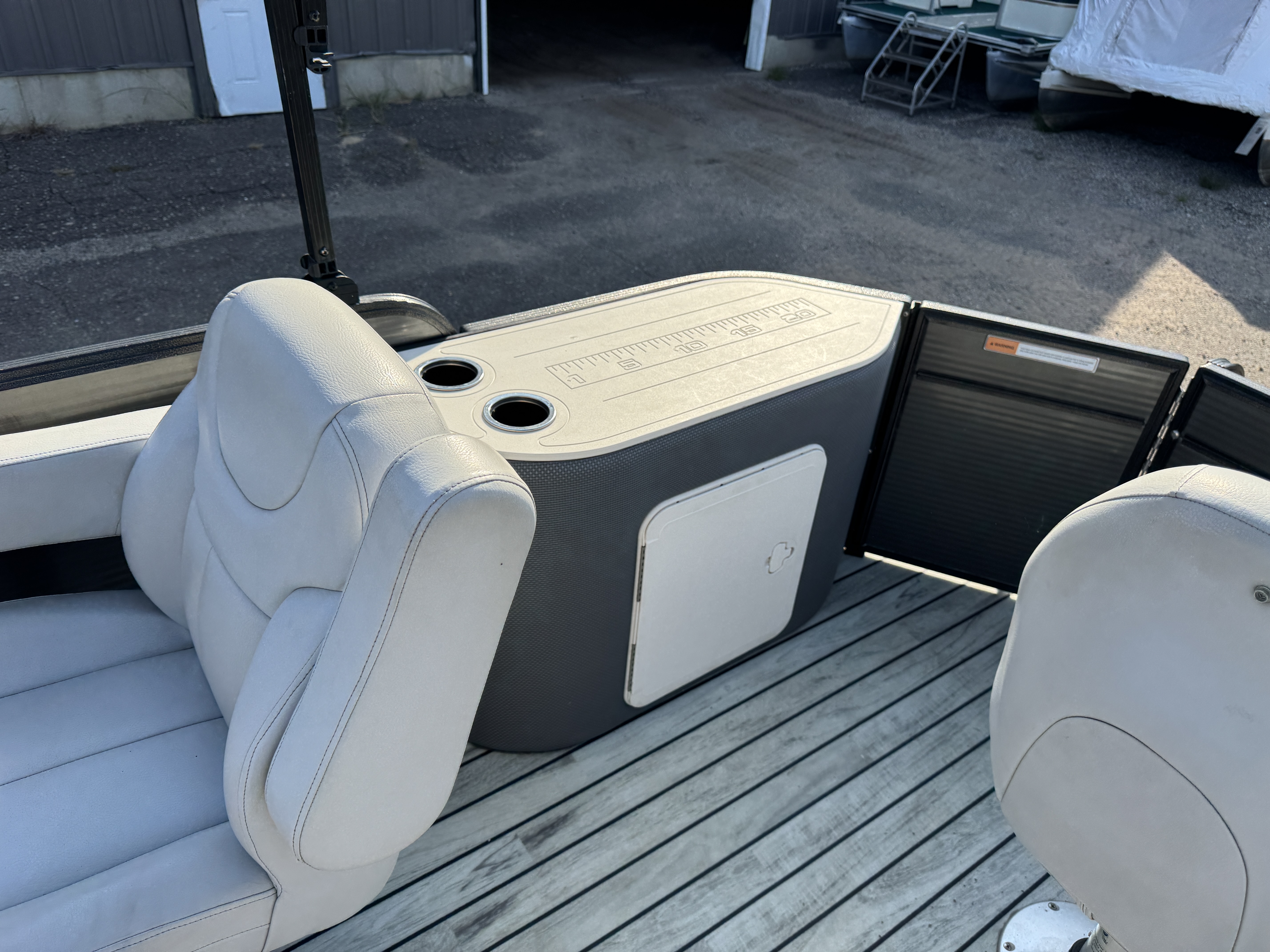 The front 2 fishing seats have mini consoles in front of them with item trays, a