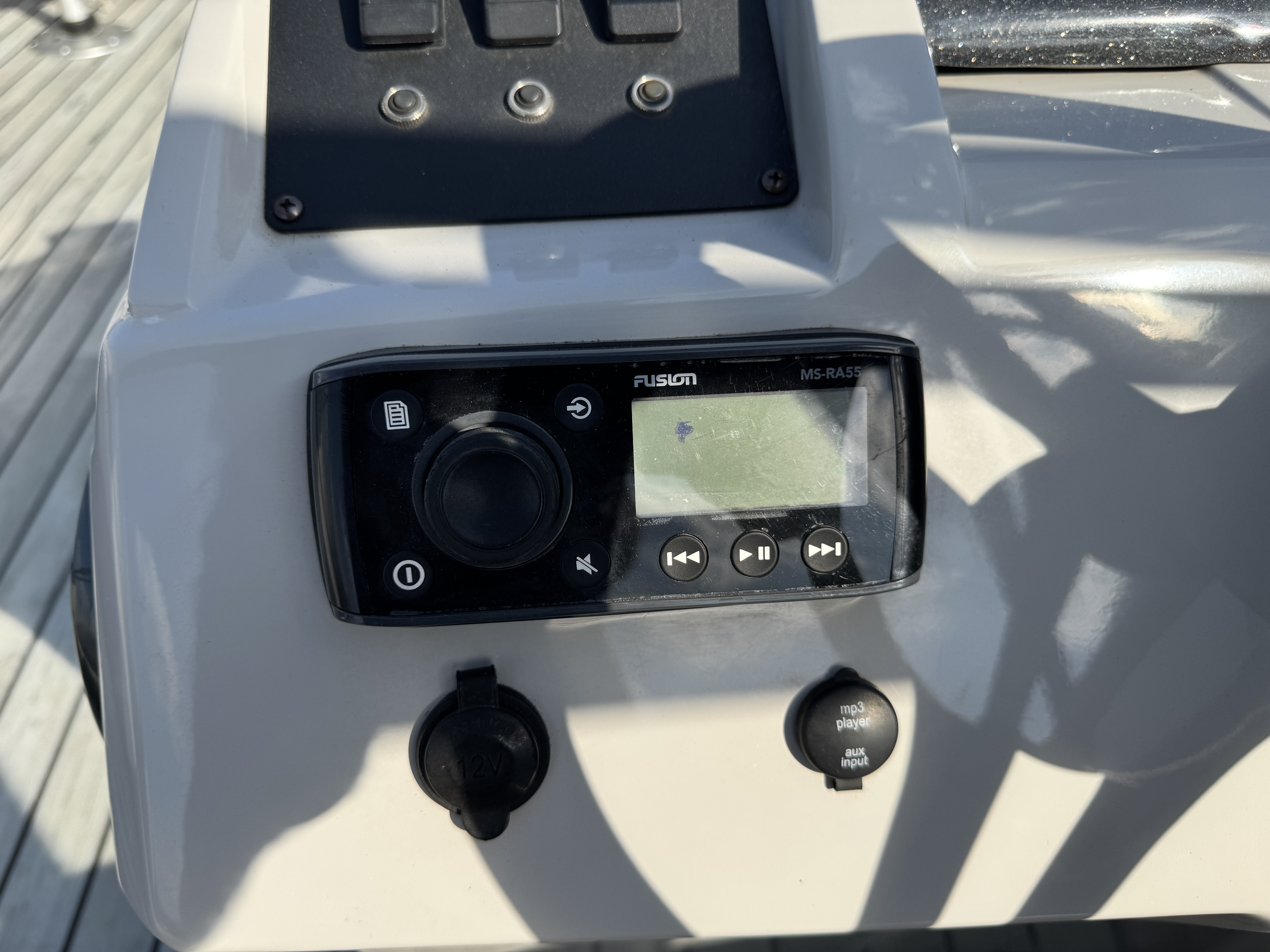 gauge. There is a Fusion MS-RA55 Bluetooth audio stereo system with additional