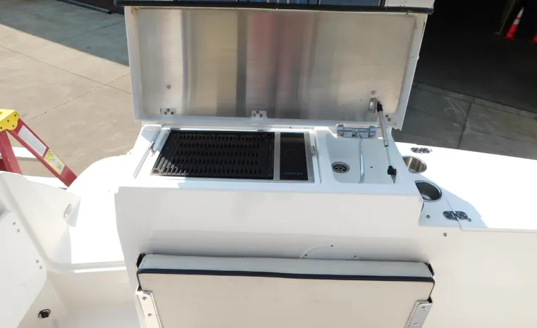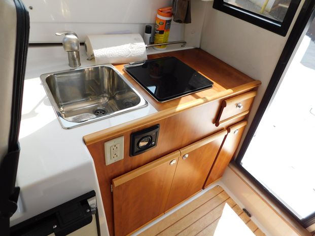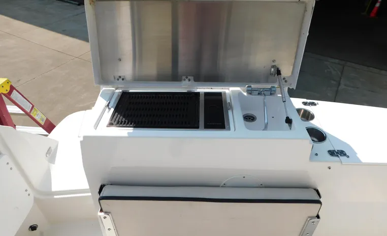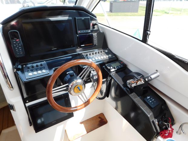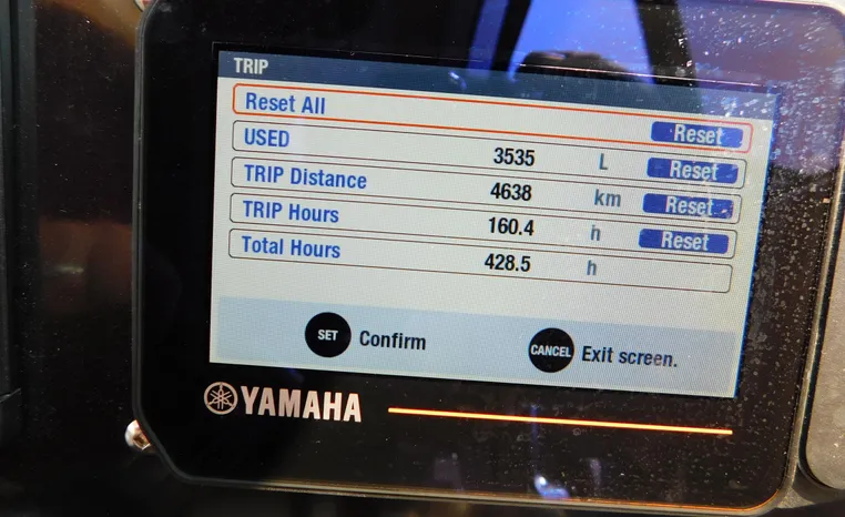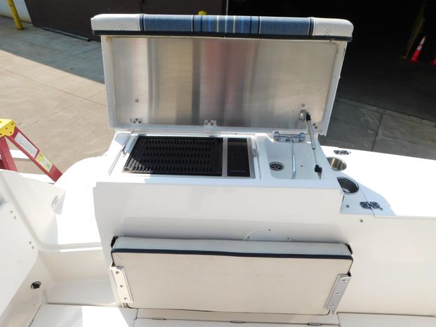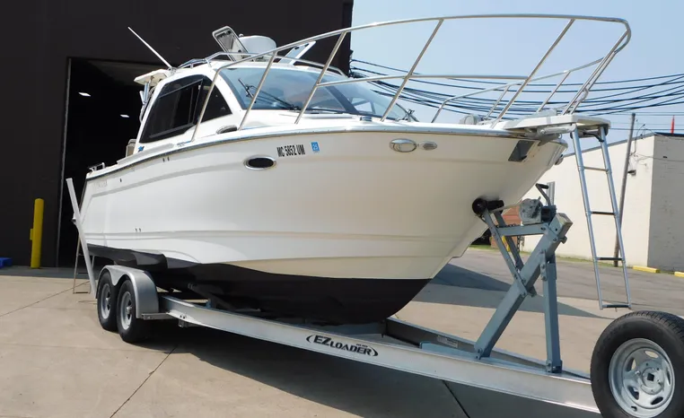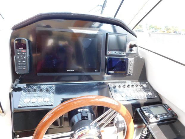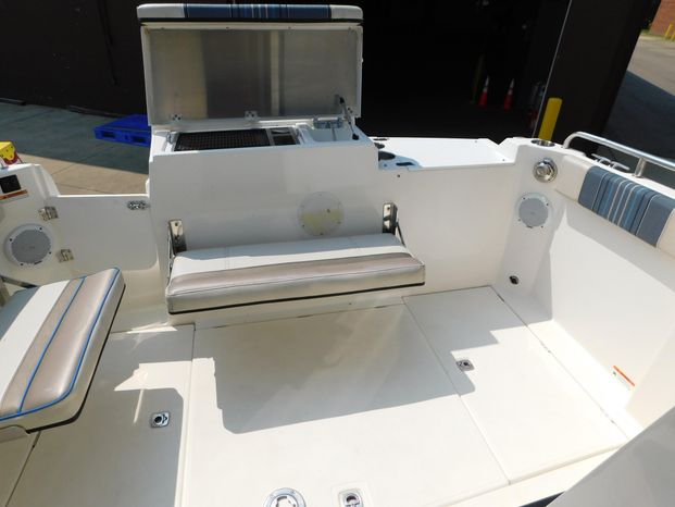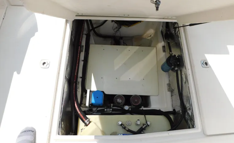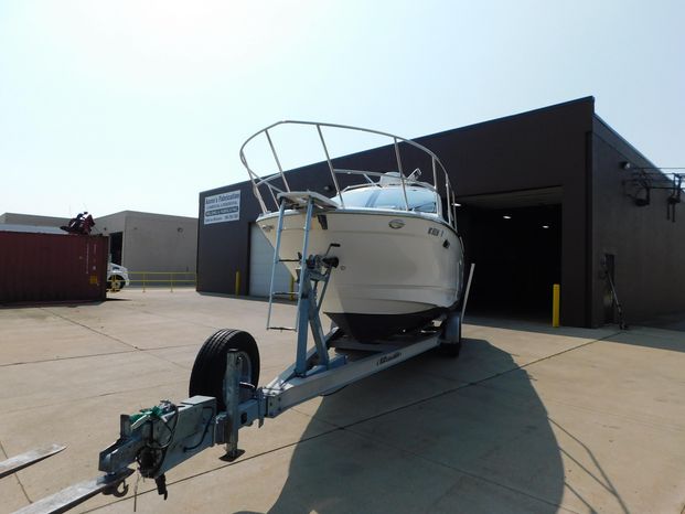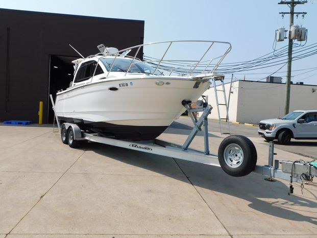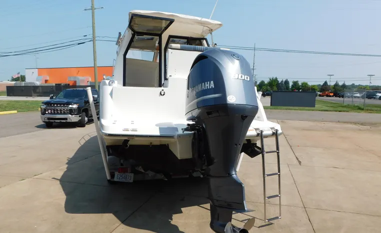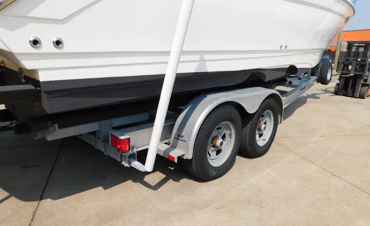 Features a Single Yamaha 4-Stroke 300-hp Gas Engine with 428.5 original hours. Notable features include but not limited to the following: 2017 EZ-Loader Tandem Axle Trailer, Air-Conditioning & Heat, Head (Enclosed / Manual-Flush), Dual Garmin (Color / Touch Screen) Display's w/Radar / GPS/Chartplotter / Sounder, Garmin Auto-Pilot, Bow-Thruster, Windlass Anchor, Transom Livewell / Stove, Premium Sound System, and MUCH more!