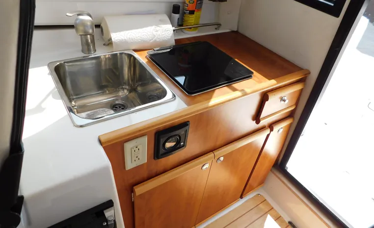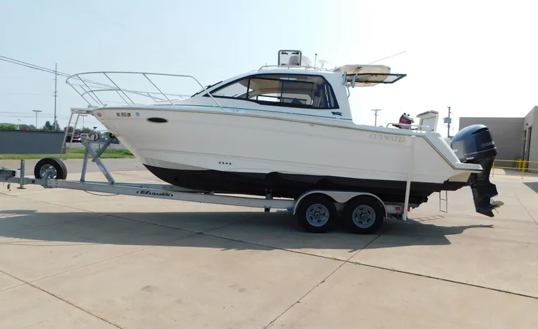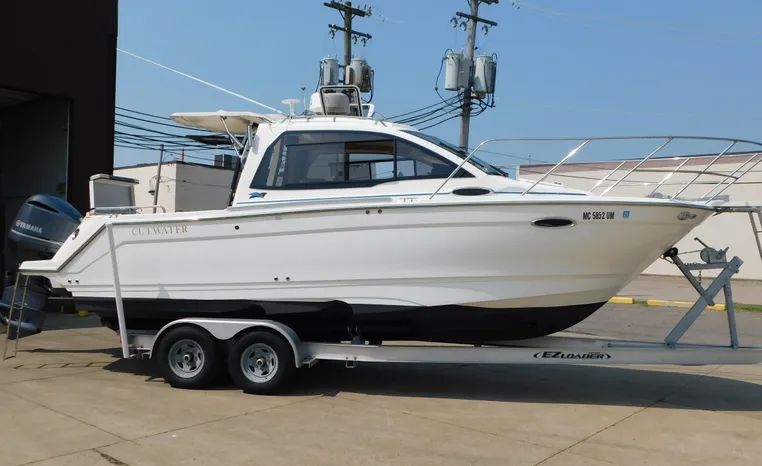 Introducing the 2017 Cutwater C-24, a remarkable cruiser that combines performance and comfort in a sleek 24-foot design. Crafted from durable fiberglass, its deep Vee hull shape ensures exceptional stability and handling, making it perfect for both leisurely outings and adventurous excursions. Powered by a robust Yamaha 4-Stroke 300-hp outboard engine, this vessel boasts impressive capabilities with 428 hours of operation, ensuring reliability on the water. The stainless steel 3-blade propeller enhances efficiency, allowing for smooth navigation. Equipped with an electric windlass, the Cutwater C-24 simplifies anchoring, making it easy to enjoy your favorite spots. With one head onboard, it provides essential amenities for day trips or weekend getaways. This used cruiser is an excellent choice for those seeking a blend of style, performance, and practicality on the water. Experience the joy of cruising with the Cutwater C-24, where every journey becomes a memorable adventure.