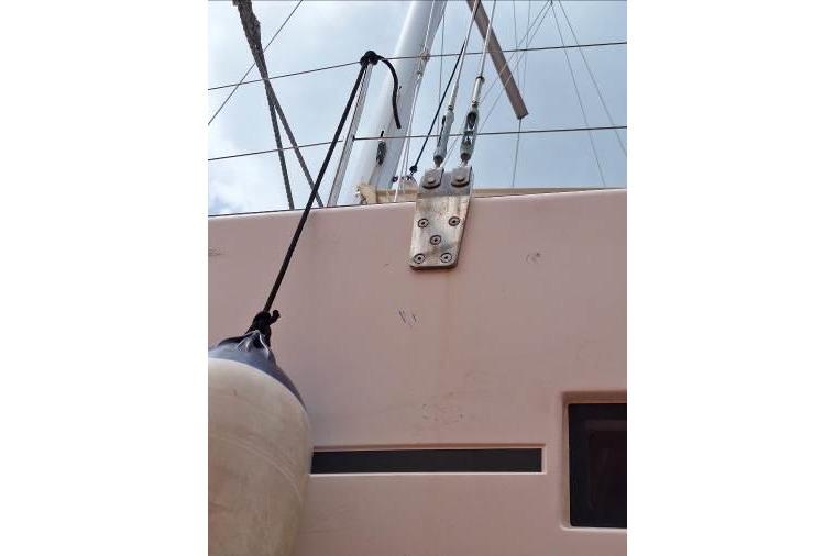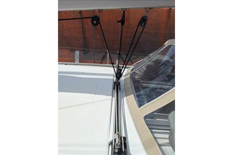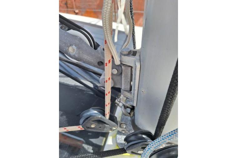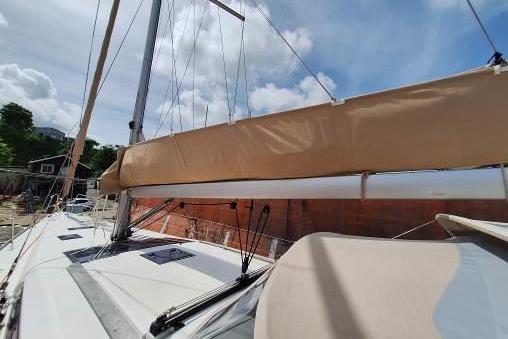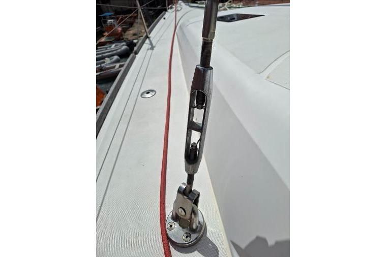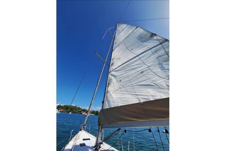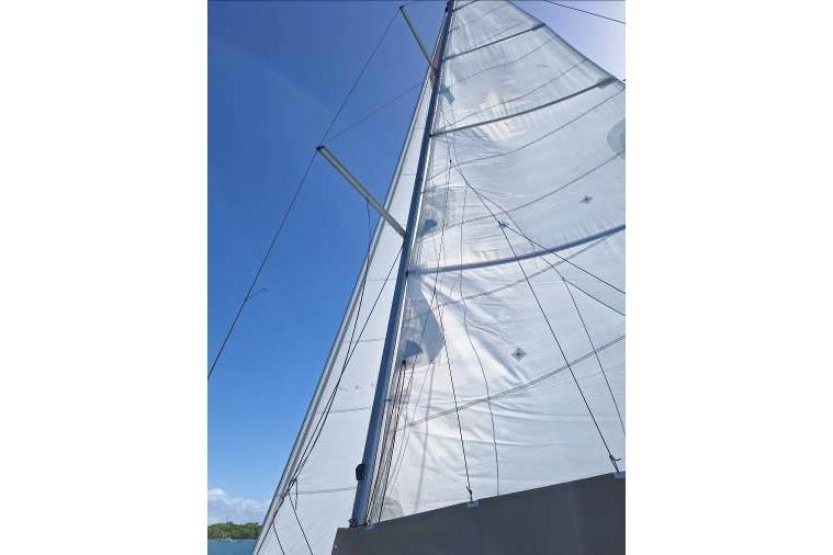 Z Diffusion aluminum mast (two swept spreaders) · standing rigging inspected Apr 2024 · NORTH SAILS full-batten dacron mainsail (near-new) with lazy bag/jacks · NORTH SAILS dacron genoa (very good)