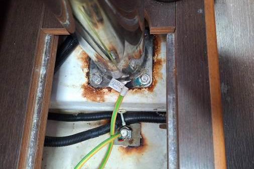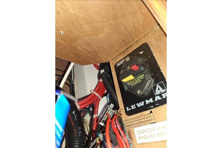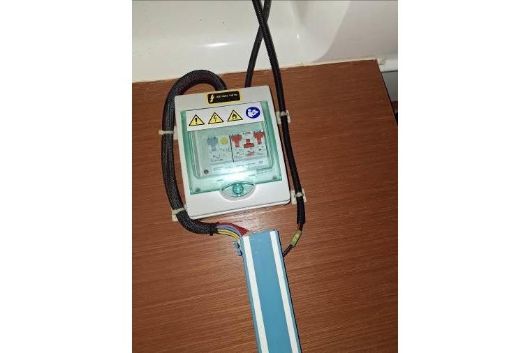 12 V DC / 220 V AC · (1) 70 Ah engine battery · (2) 105 Ah AGM service batteries · Cristec 40 A shore charger · Victron 500 W inverter · Pressurized freshwater (~400 L across two tanks) · Electric & manual bilge pumps · Shore-power inlet (220 V) · Gas system compliant (two bottles) · All seacocks/valves recently replaced