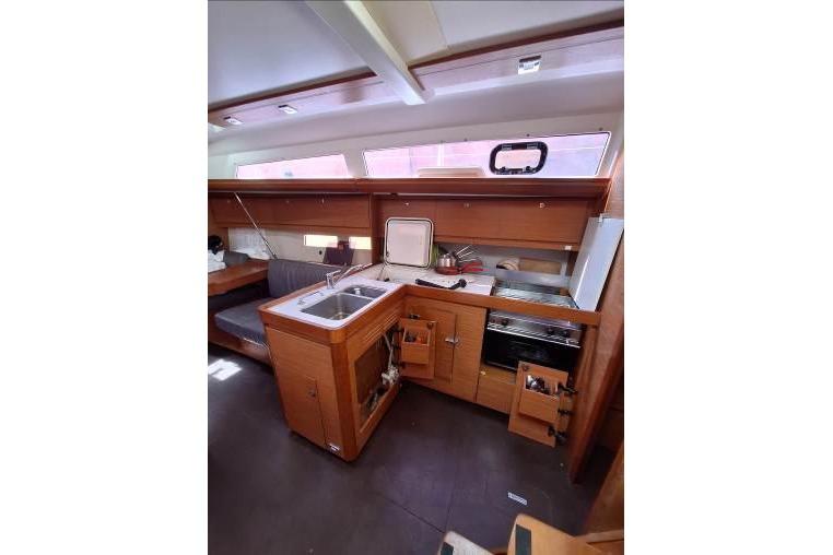 Designed by Umberto Felci and rated Category A, the Dufour 412 Grand Large delivers the balanced performance and seakeeping cruisers prize. Handling is straightforward with twin wheels, Facnor furling, well-placed Lewmar winches and an efficient Raymarine suite with autopilot. Ground tackle is equally capable via a Lofrans 1000 W windlass and a 20 kg Delta on 50 m of chain.