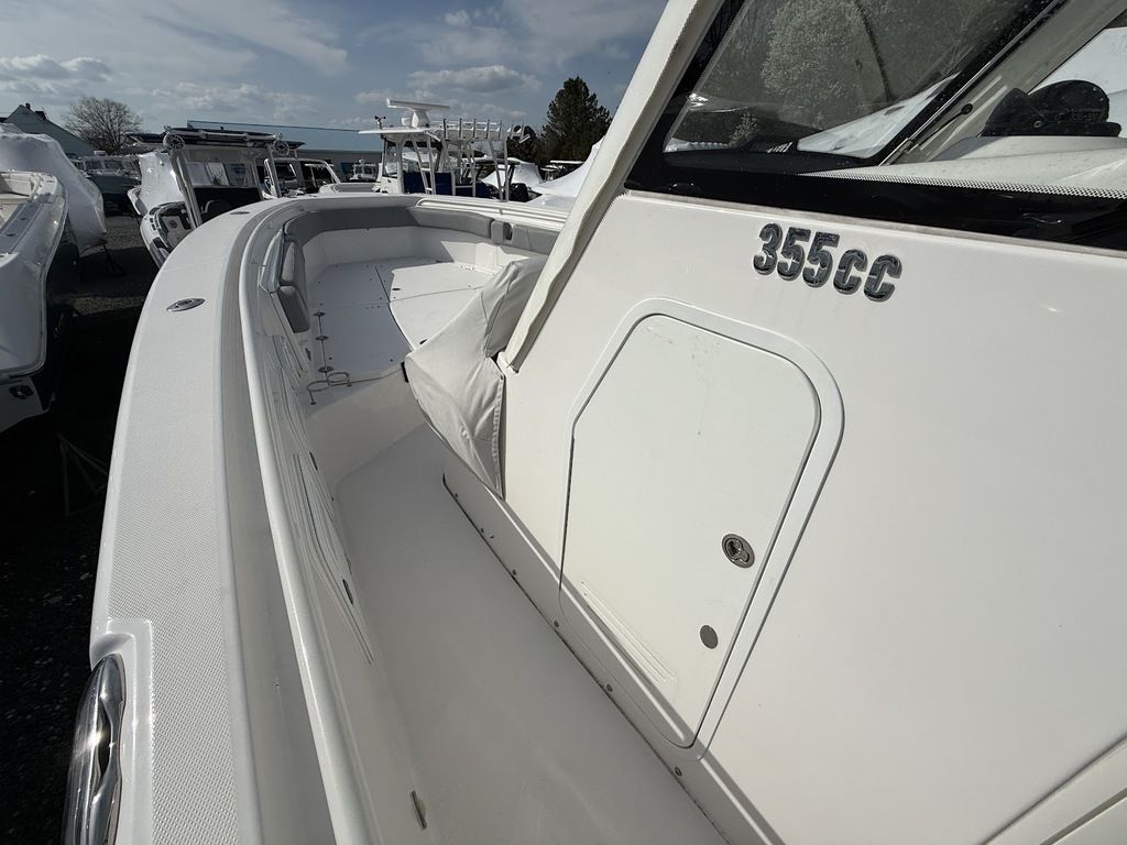 Luxury Is Not An OptionWith tons of rod holders and lockable storage throughout the gunwales, livewells for your bait, and the go-anywhere-in-any-condition console, the 355cc is built to haul in a hefty catch. This fun and fishable boat also boasts the largest deadrise at transom as well as the largest weight capacity of any comparable boat.