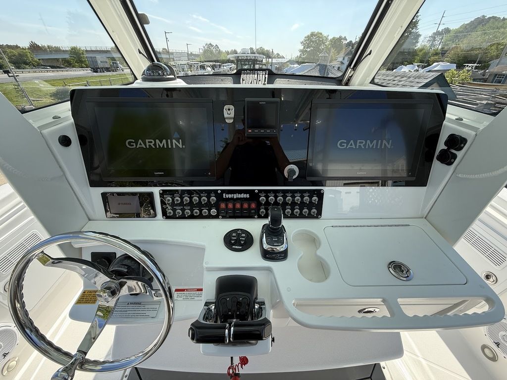 Captain your vessel from above - featuring the optional sport station or full upper station - Everglades' 355cc allows you to take the helm to new heights.