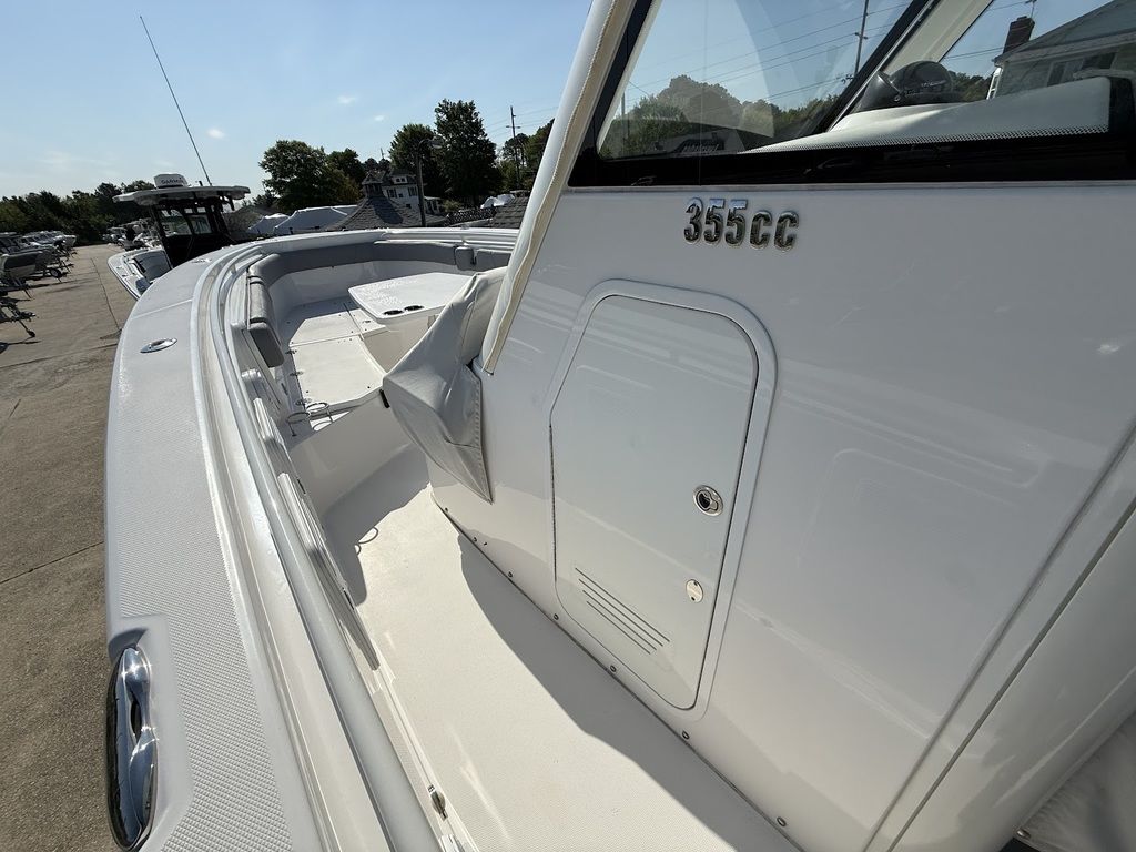 Luxury Is Not An OptionWith tons of rod holders and lockable storage throughout the gunwales, livewells for your bait, and the go-anywhere-in-any-condition console, the 355cc is built to haul in a hefty catch. This fun and fishable boat also boasts the largest deadrise at transom as well as the largest weight capacity of any comparable boat.