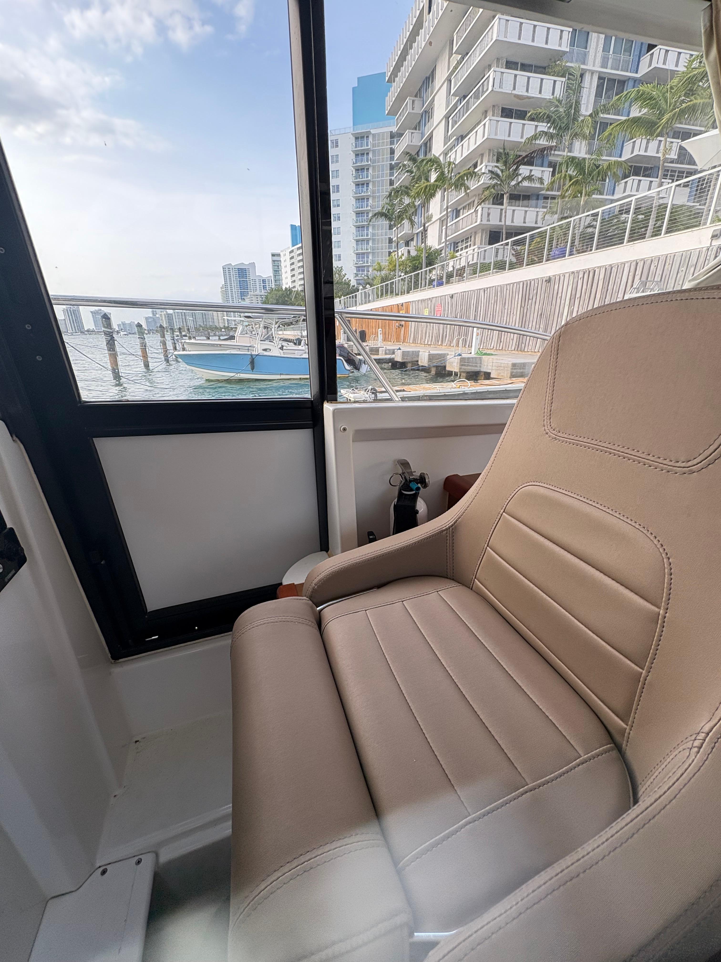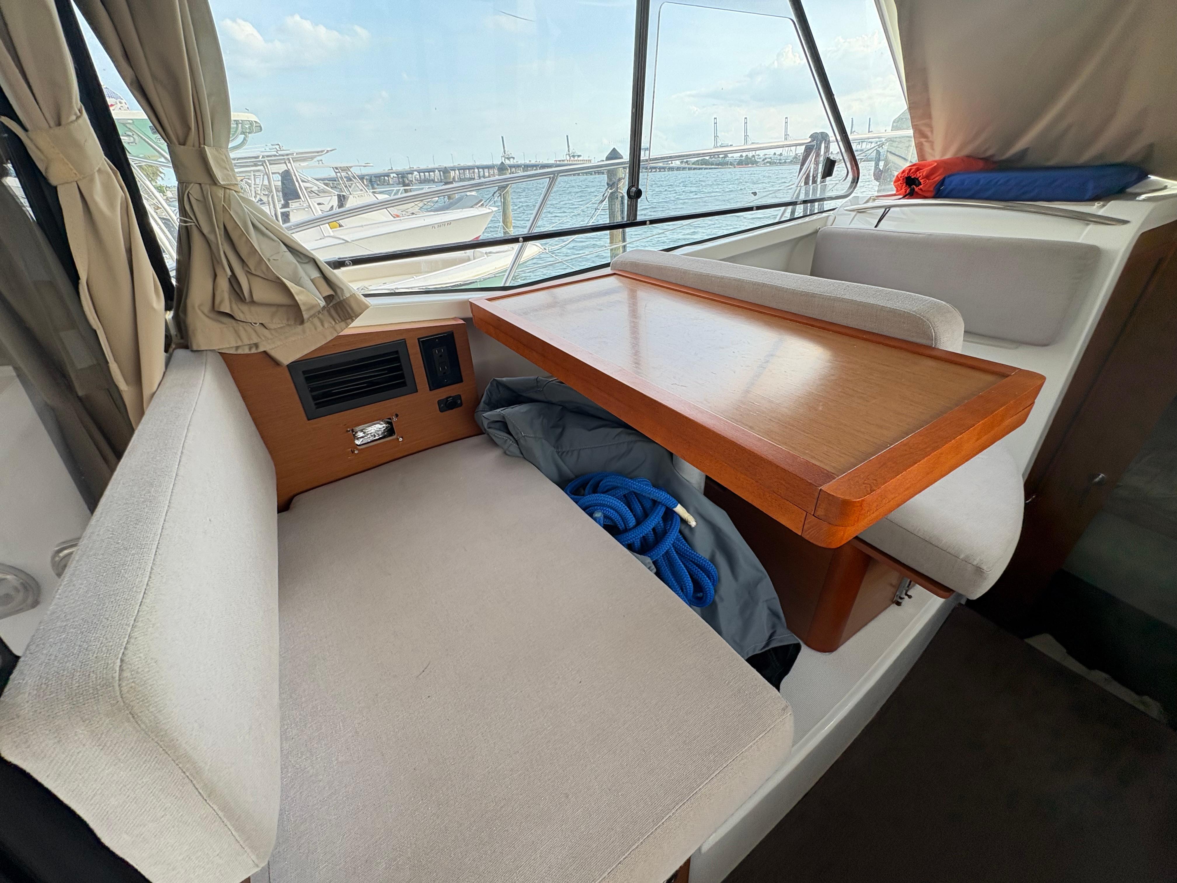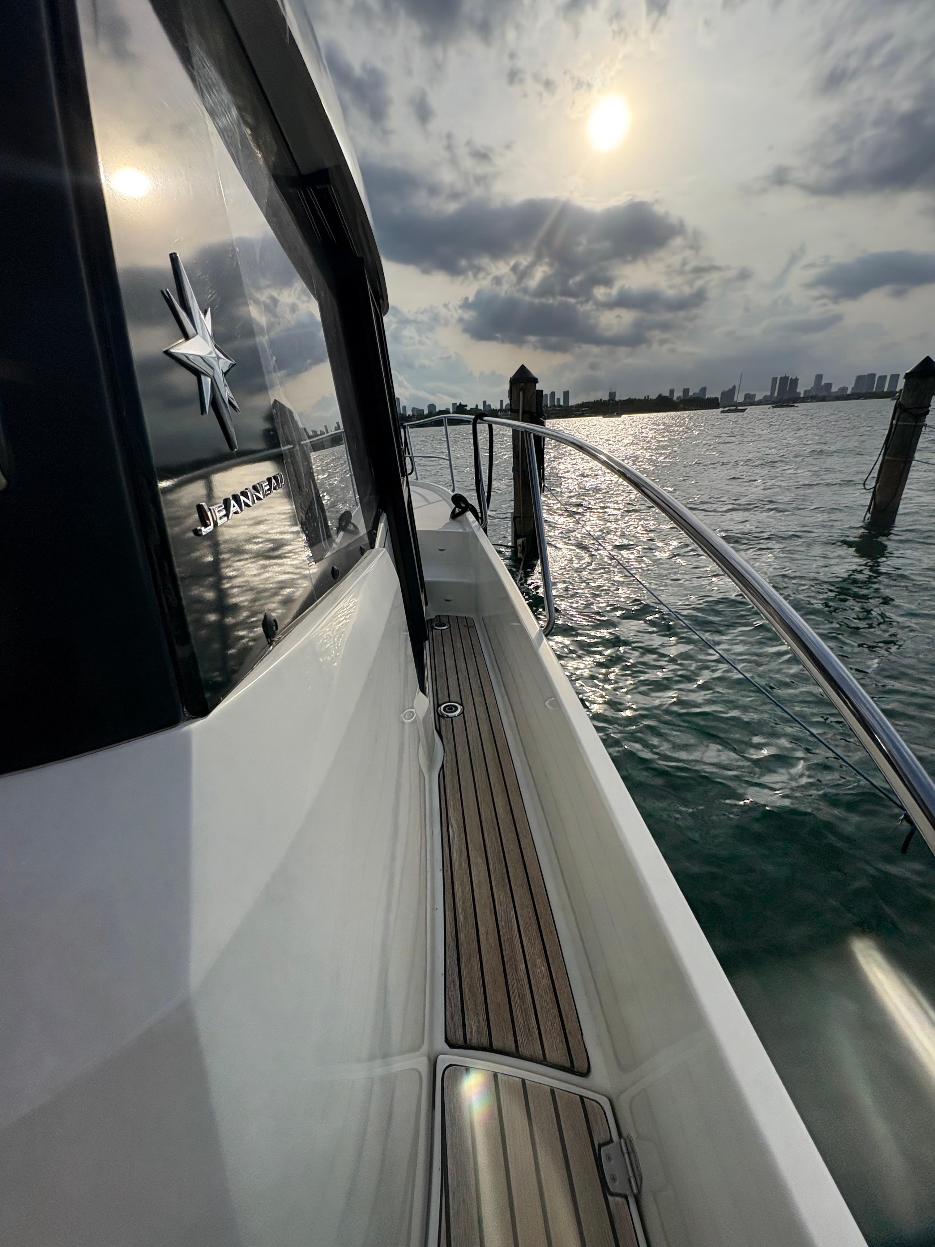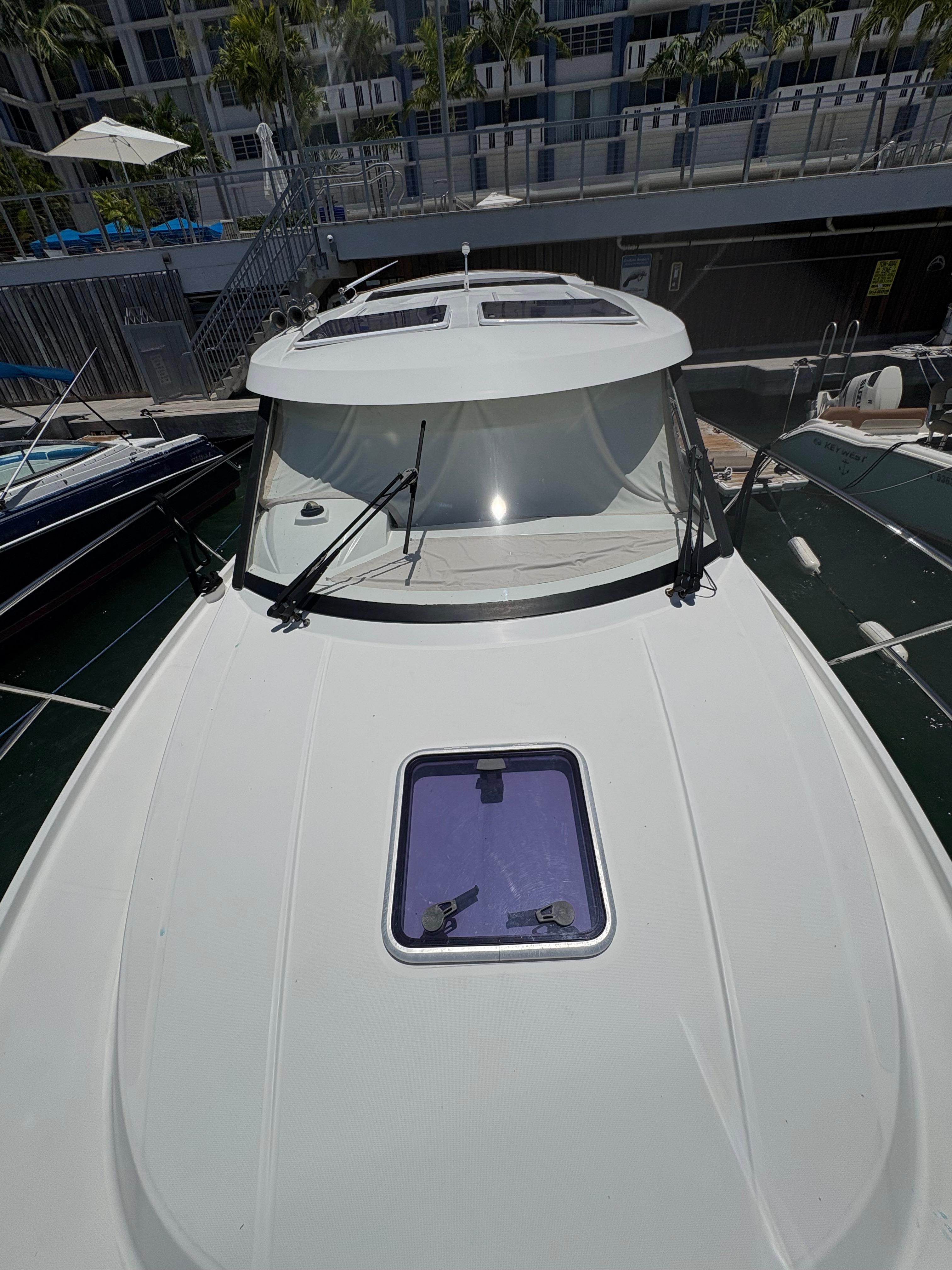 • Sliding Side Door: Located next to the helm for easy access to the side deck, facilitating single-handed docking.