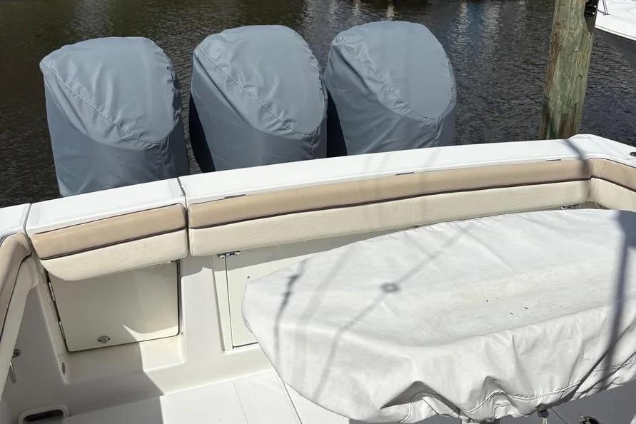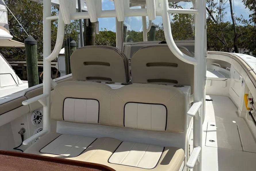 (2) macerated in-deck fish boxes · 40-gal livewell · Electric Maya Epoch teaser reels + manual teasers at main helm · Outriggers · Cockpit cushions · Full cover