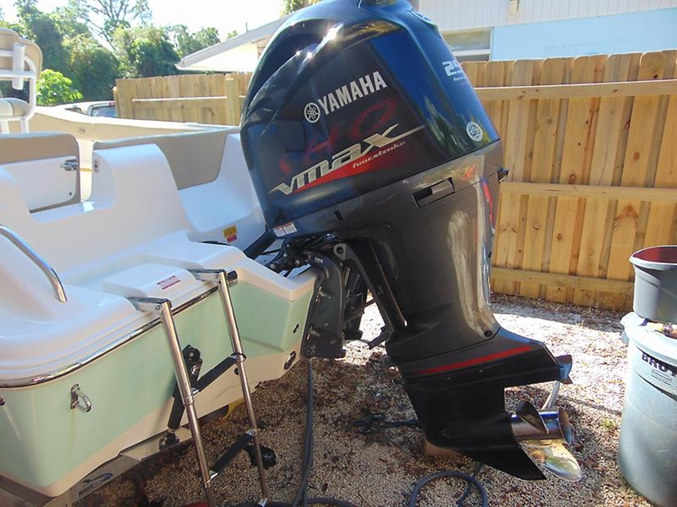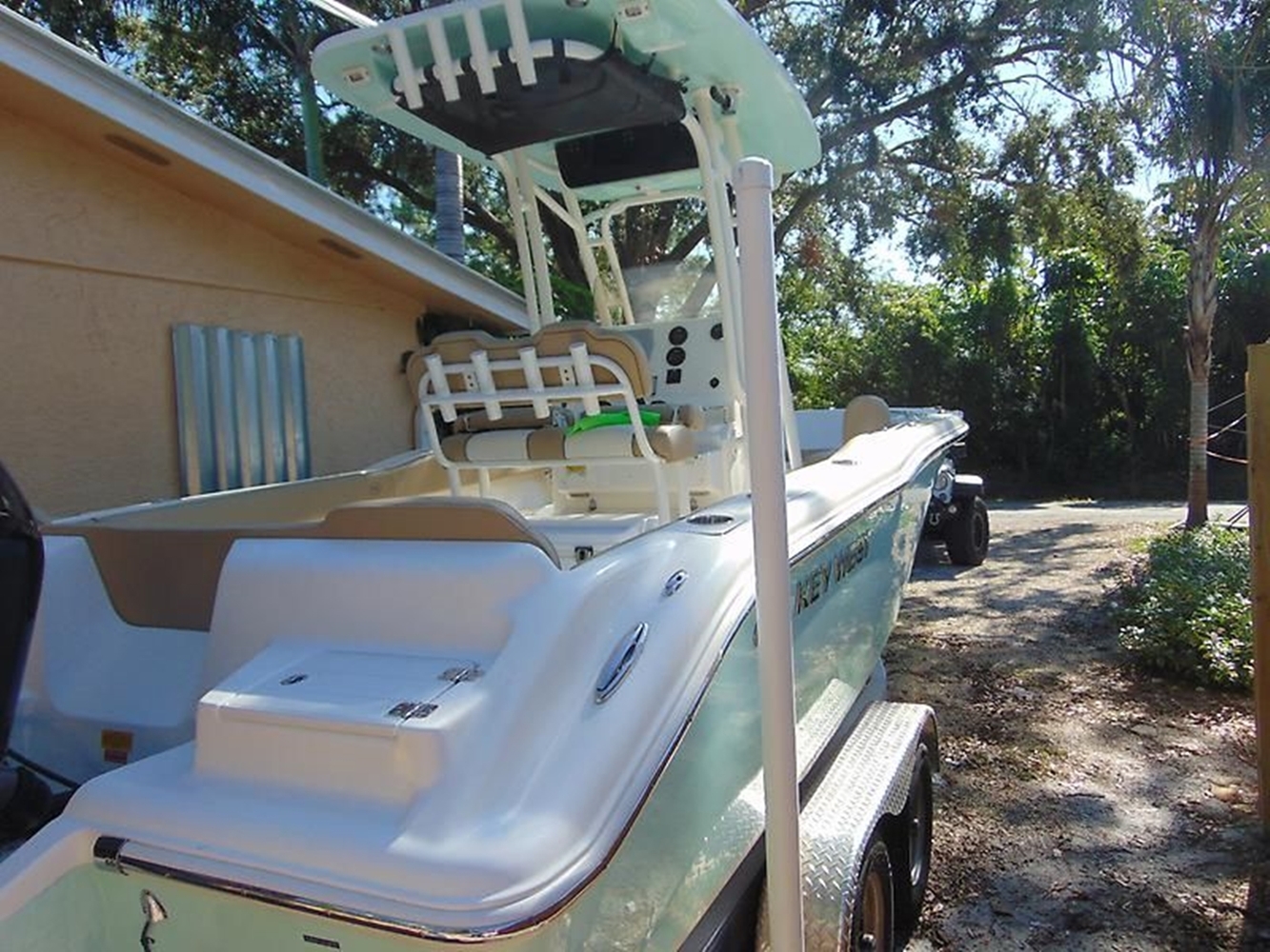 2017 Key West 239 Center Console boat with Magic Tilt Trailer. This boat is great shape with low hours on the engine. The trailer is also virtually brand new which makes this an exceptional package for the fisherman or for a great family boat. Capable of taking on the open ocean as well as running in the bays and the river, this is one special boat and she is loaded with all the features you could ask for in a package. Mint Green Hull Yamaha Vmax 250 horse power Engine with low hours Taco Grand Slam Outriggers Custom Tan Seating Garmin Echo Map SV Chartplotter Removable Table Rear Cushions Fresh Water Shower Raw Water Wash Down LED Deck Lighting Underwater Lights Spreader Lights VHF Radio Still in The Box UBS AUX Input Eight Rocket Launchers Live Well-20 gallons Lenco Trim Tabs Jensen Stereo with 6 Deck Speakers.