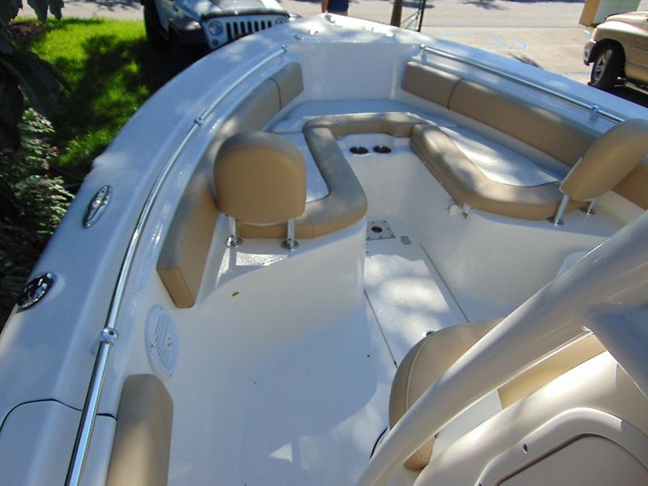 The 239FS offers the largest cockpit in its class, and loaded with features for both family comfort and serious fishing. Enjoy the comfort of the full width bench seat in the rear and the optional front facing seating in the bow for relaxing day on the water with the family and friends, or hit the blue water safe and secure in a very capable long range offshore fishing platform. Fishing features include the ever present live well, rod storage racks, trolling rod holders, and even an insulated, macerated under floor fish box up front. The 239FS is ready for whatever water sports your family enjoys.