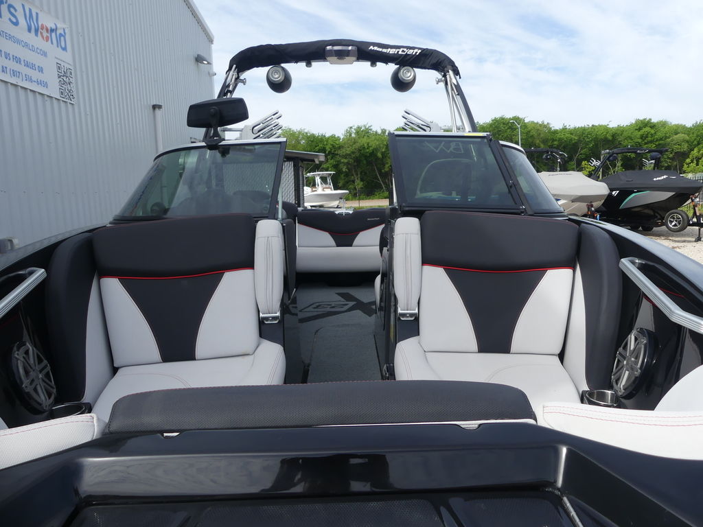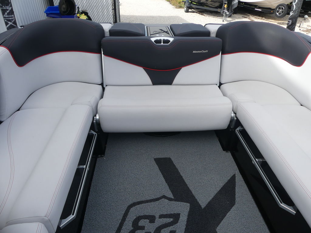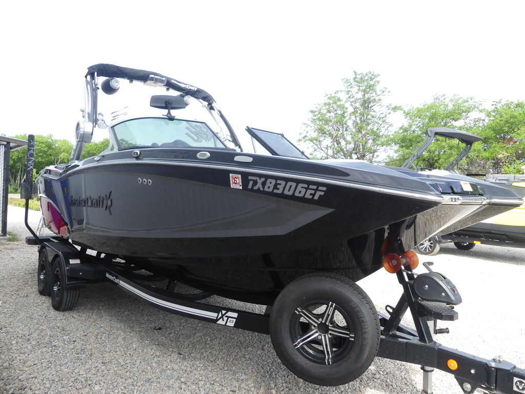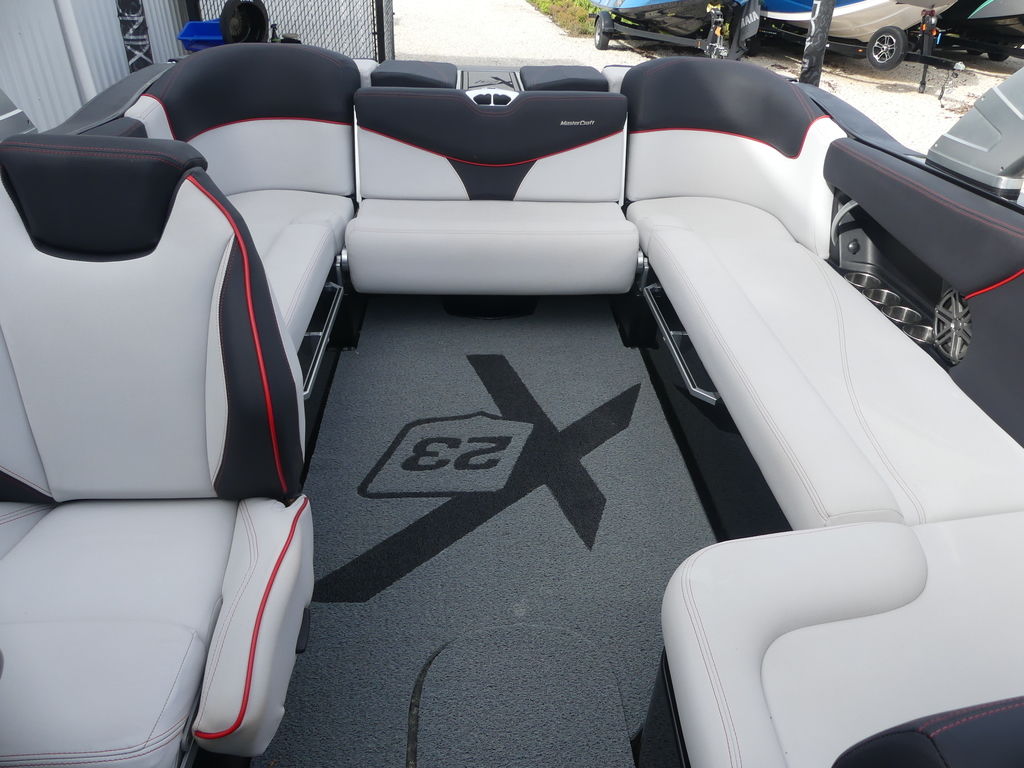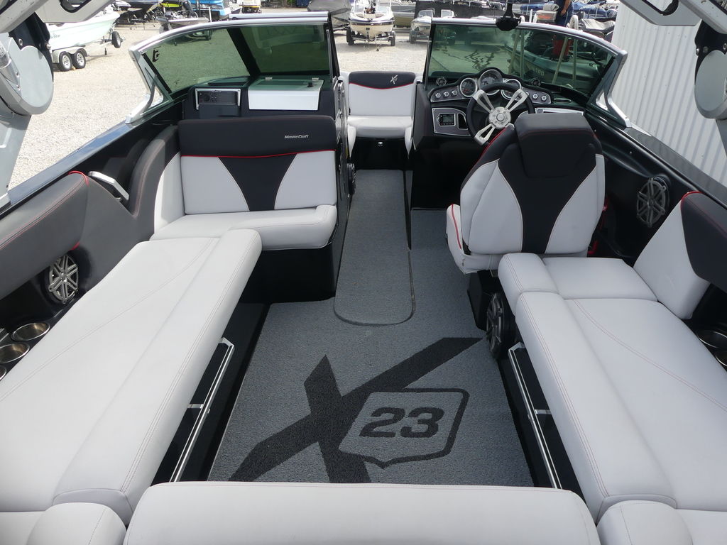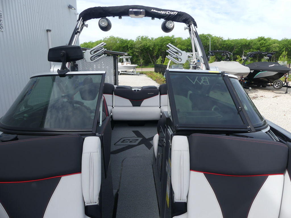 The 2017 MasterCraft X23 is a 23-foot premium towboat engineered specifically for wakesurfing and wakeboarding performance, accommodating up to 15 passengers. Known for its deep hull and massive 3,000-pound ballast system, it delivers one of the largest and most customizable surf waves in the industry.