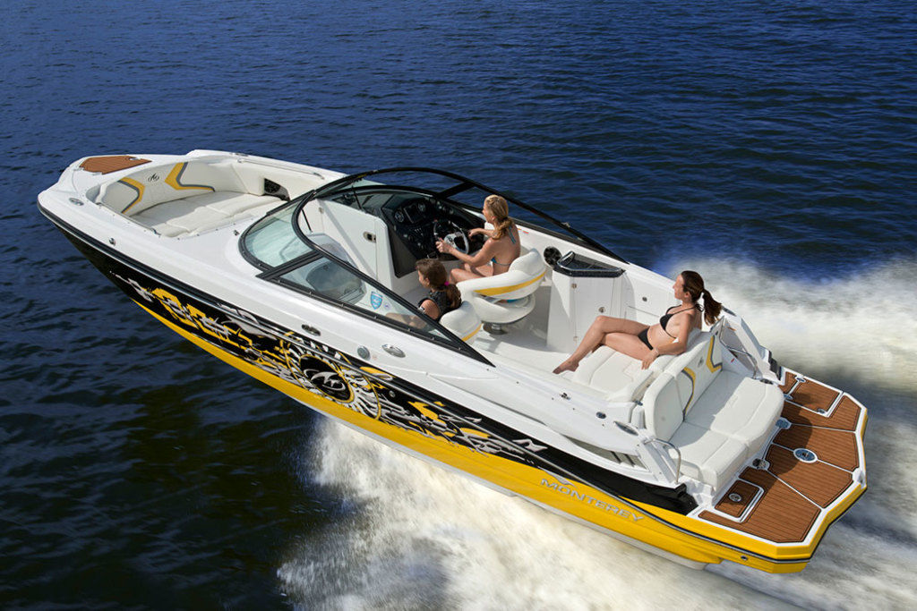 The Monterey M4 stands out with its sleek profile and well-thought-out layout. At around 23 feet, it offers an ideal balance of size and capability, delivering impressive stability and smooth performance whether you’re cruising the lake, pulling wakeboards, or simply enjoying a day afloat. The refined hull and responsive steering make every outing feel confident and enjoyable.