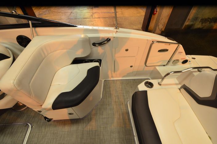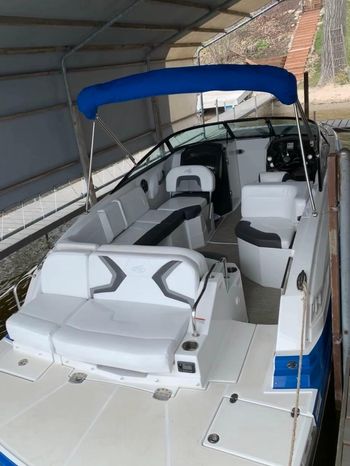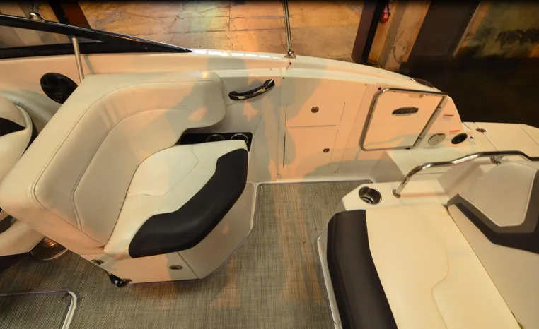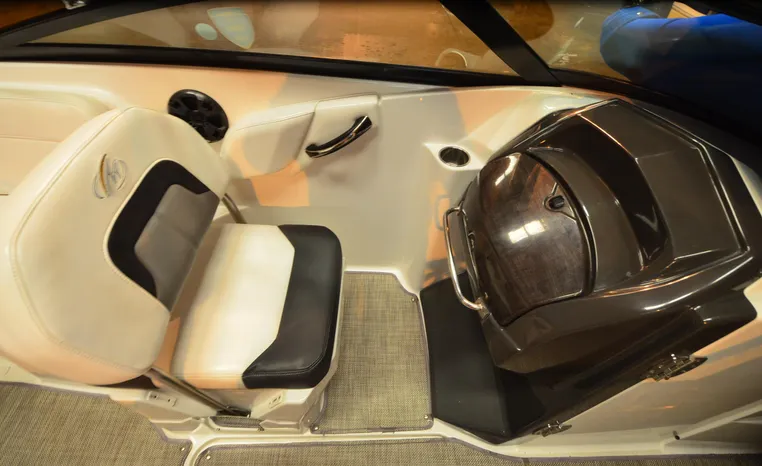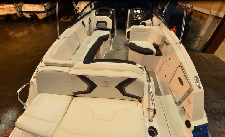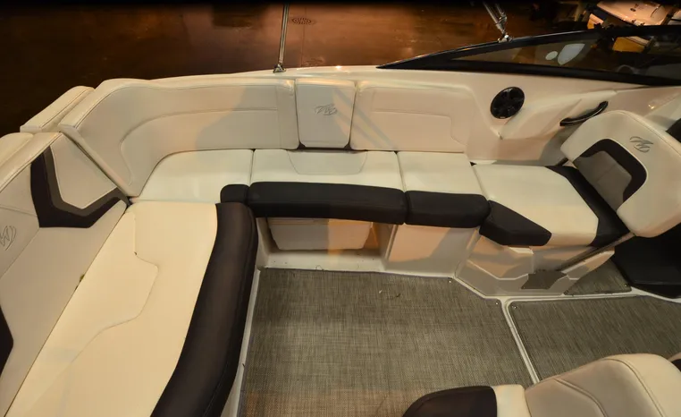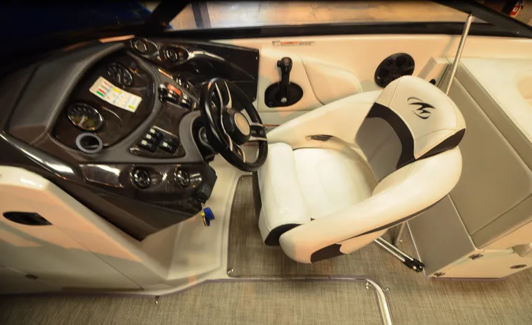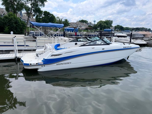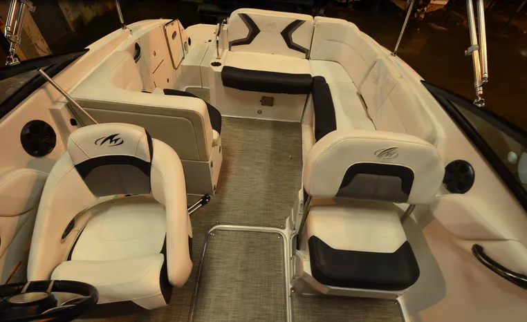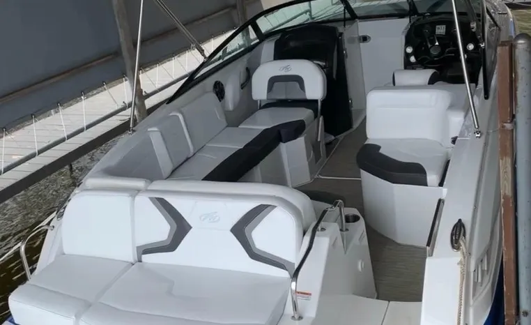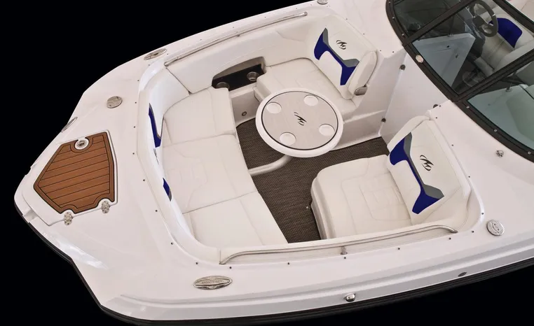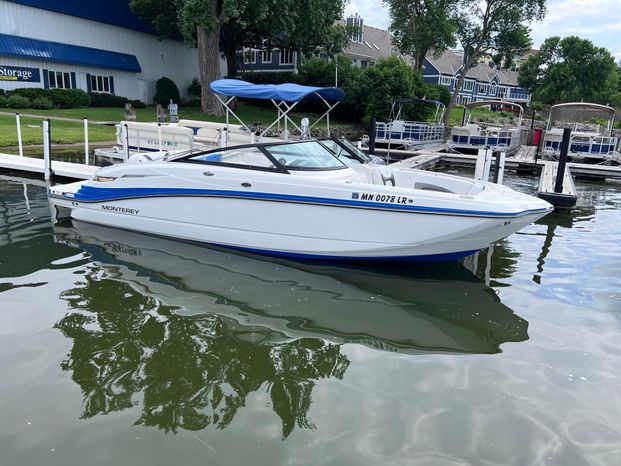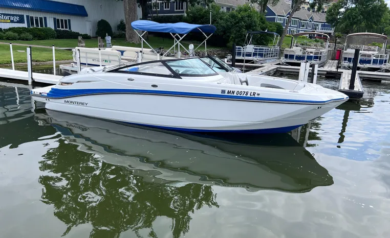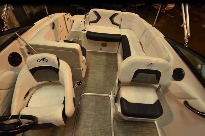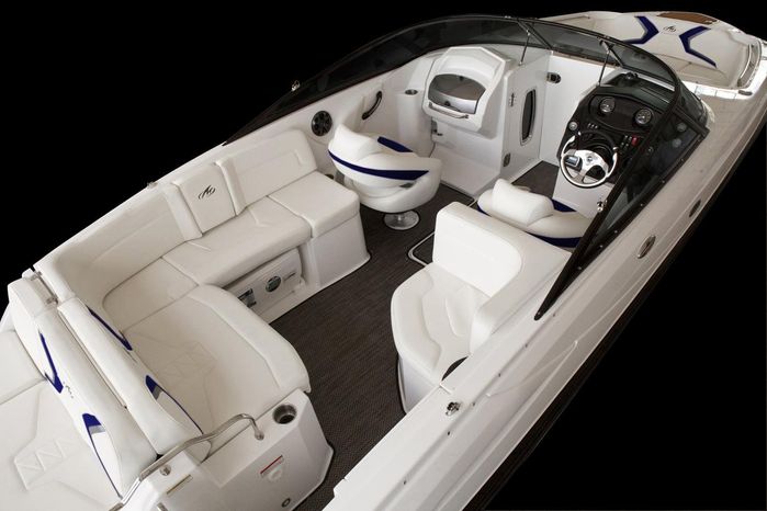Everything you’ll need to enjoy a full day of cruising, skiing, wakeboarding and tubing awaits you aboard the Monterey Boats M6. Features spacious seating and storage options, a head compartment, two recessed and telescoping boarding ladders located in the bow and stern, and a Fusion satellite ready AM/FM stereo; throw in the optional wet bar and you’ll have everything an active crew could ever need to enjoy a day out on the water. With the standard signature graphics and colored hull and deck, you’re sure to have one of the sharpest boats on the water. The M6 is style, luxury and performance personified.