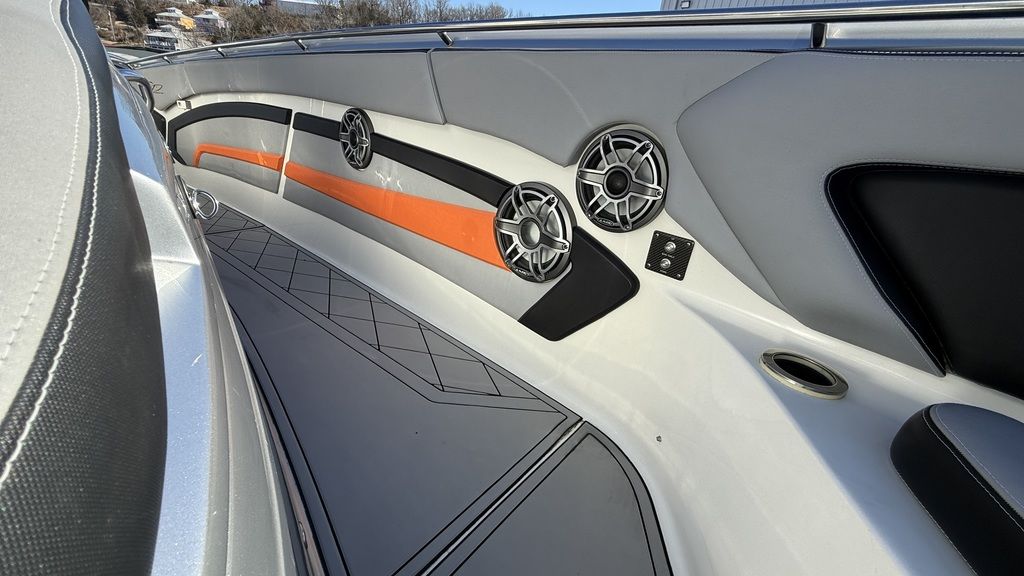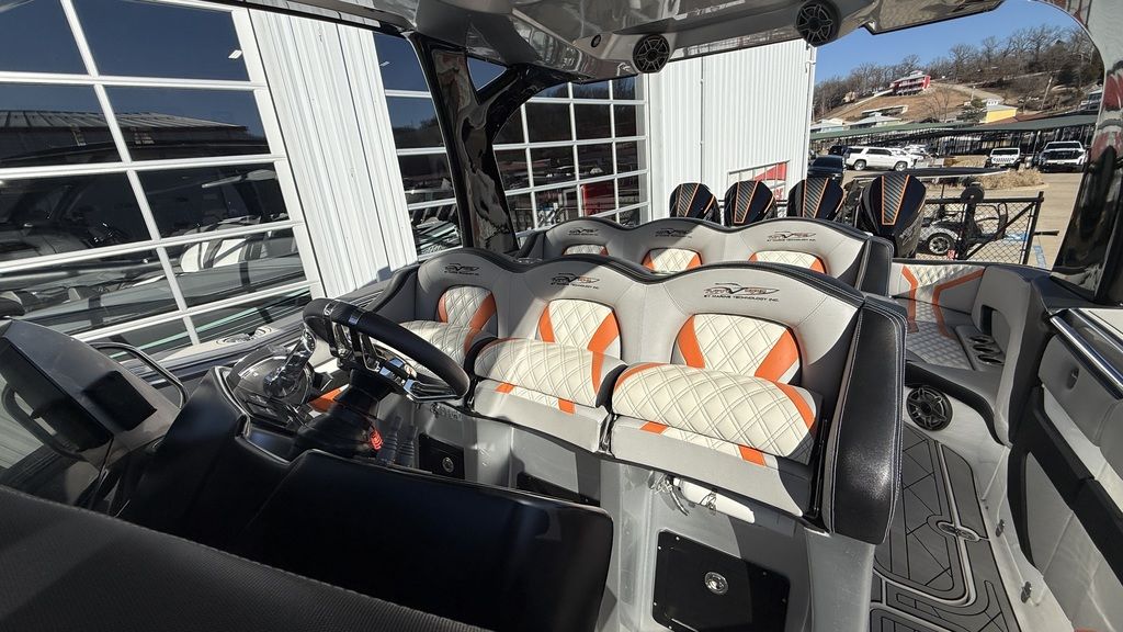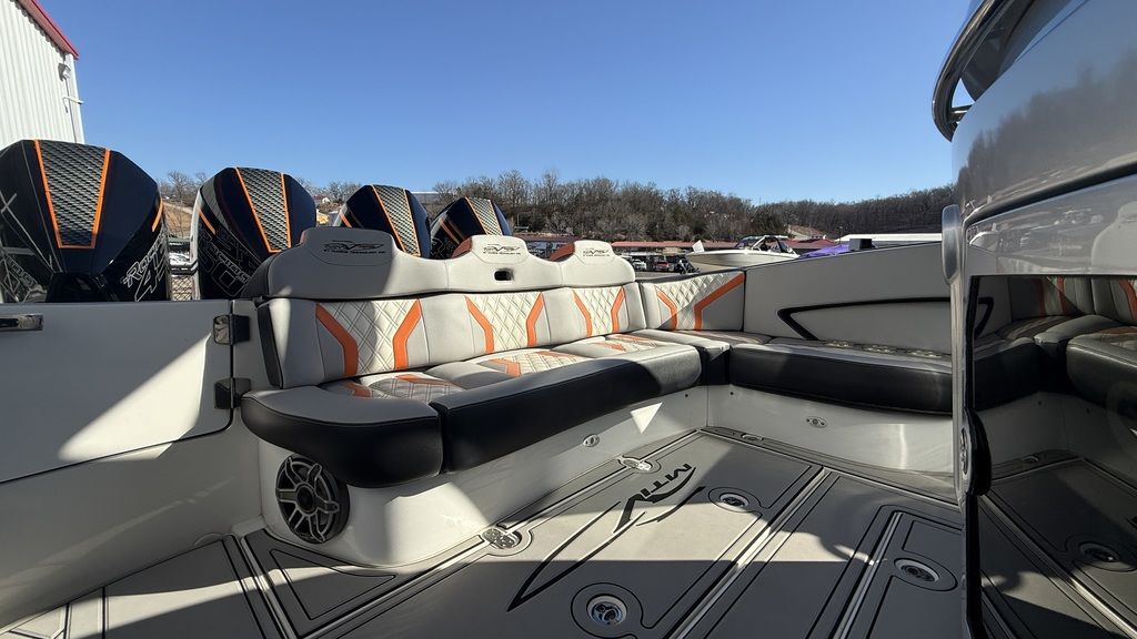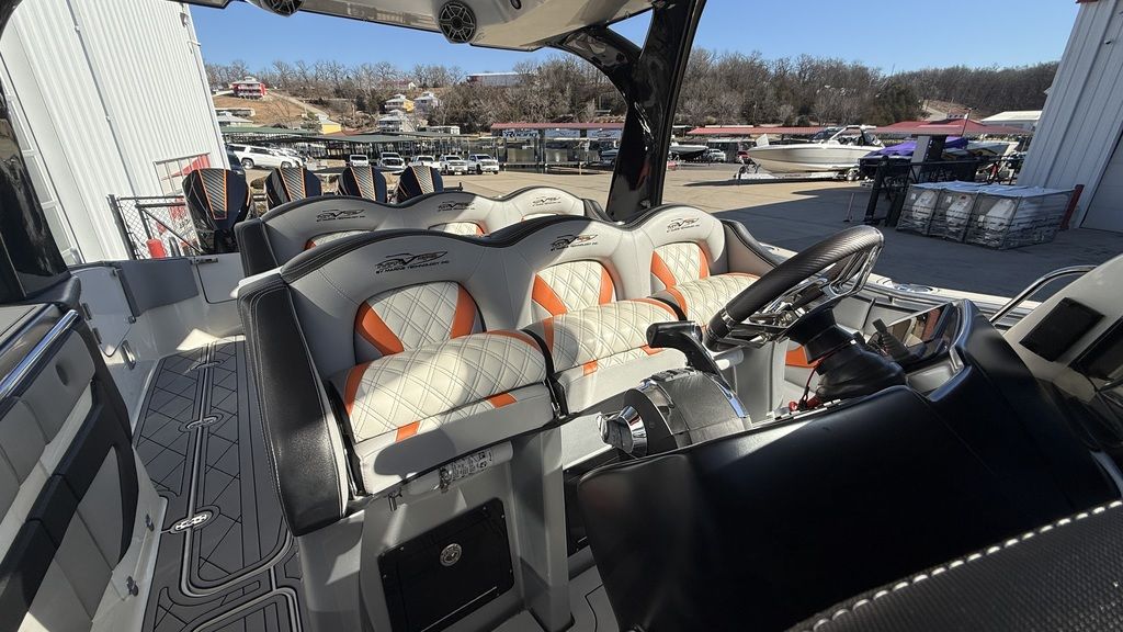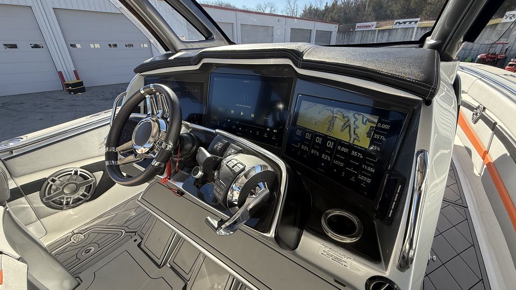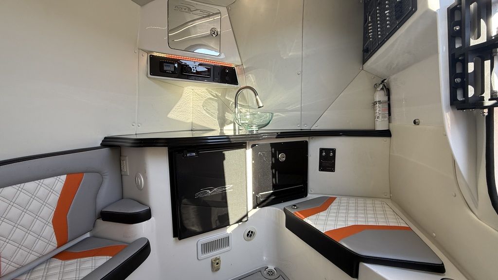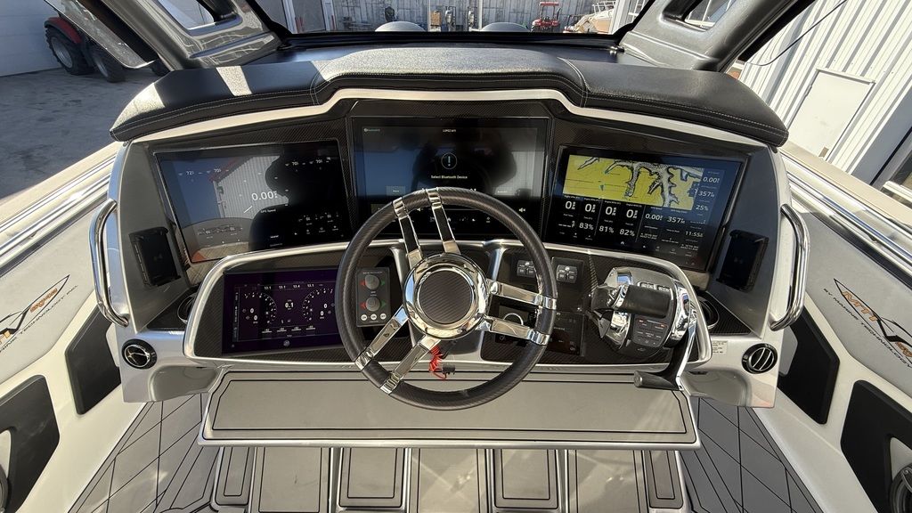Massive JL Audio sound system, air conditioning, dash blowers, inverter, RGB LED interior lights, 5 Garmins, bow thruster, stern thruster, EVA foam flooring, bar console with sink, cabin with head, sink and refrigerator, power bow table, wireless phone chargers, and much more!!