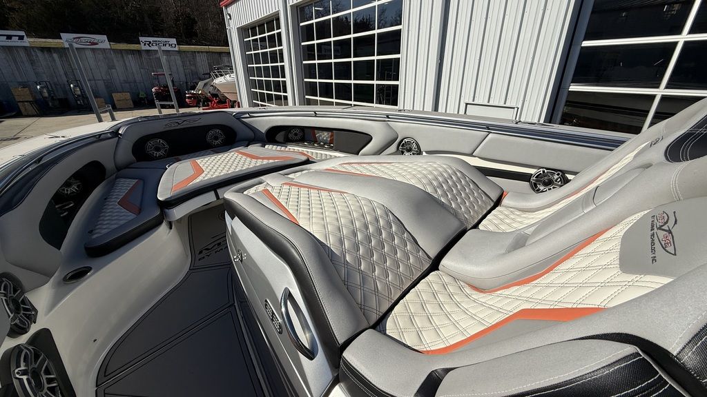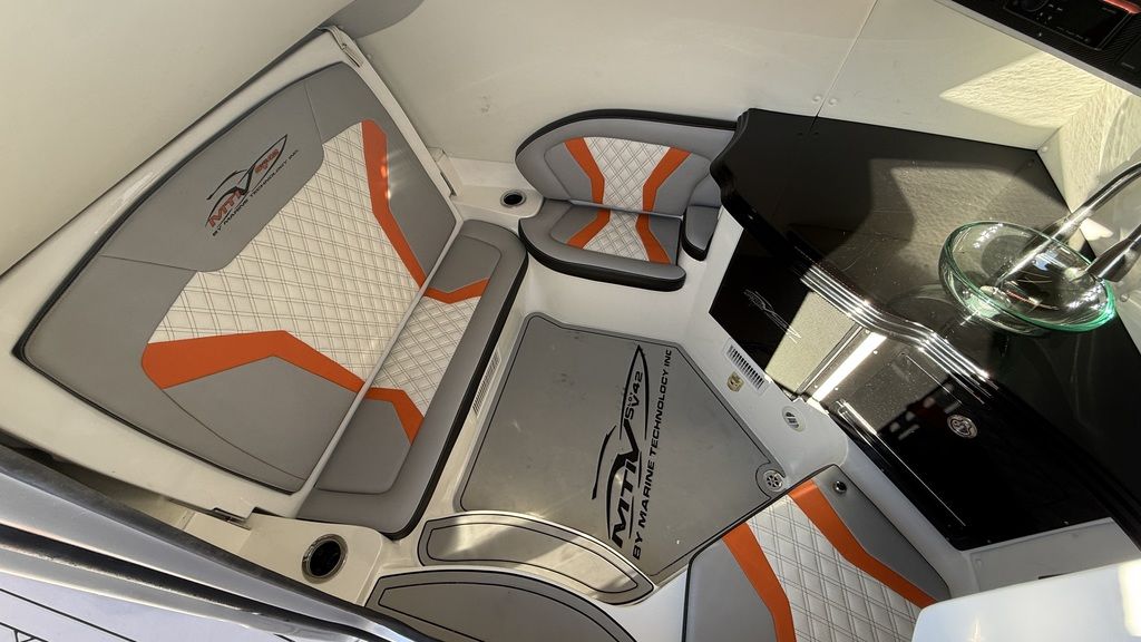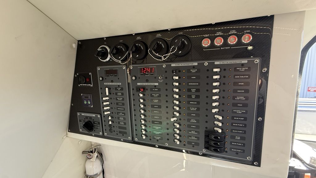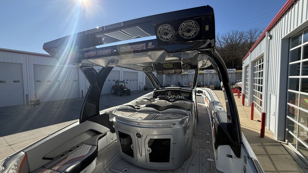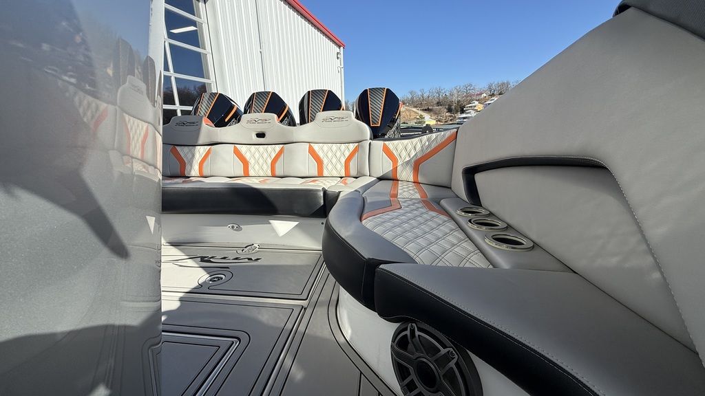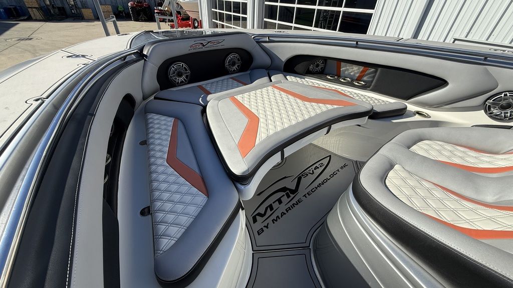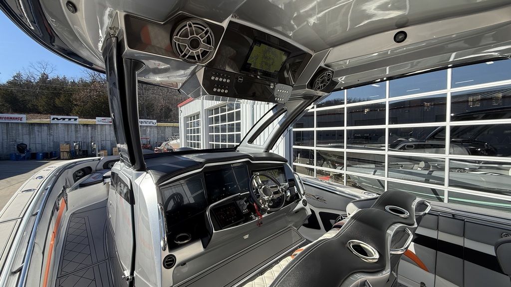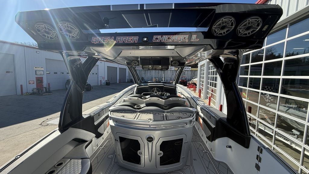 Massive JL Audio sound system, air conditioning, dash blowers, inverter, RGB LED interior lights, 5 Garmins, bow thruster, stern thruster, EVA foam flooring, bar console with sink, cabin with head, sink and refrigerator, power bow table, wireless phone chargers, and much more!!