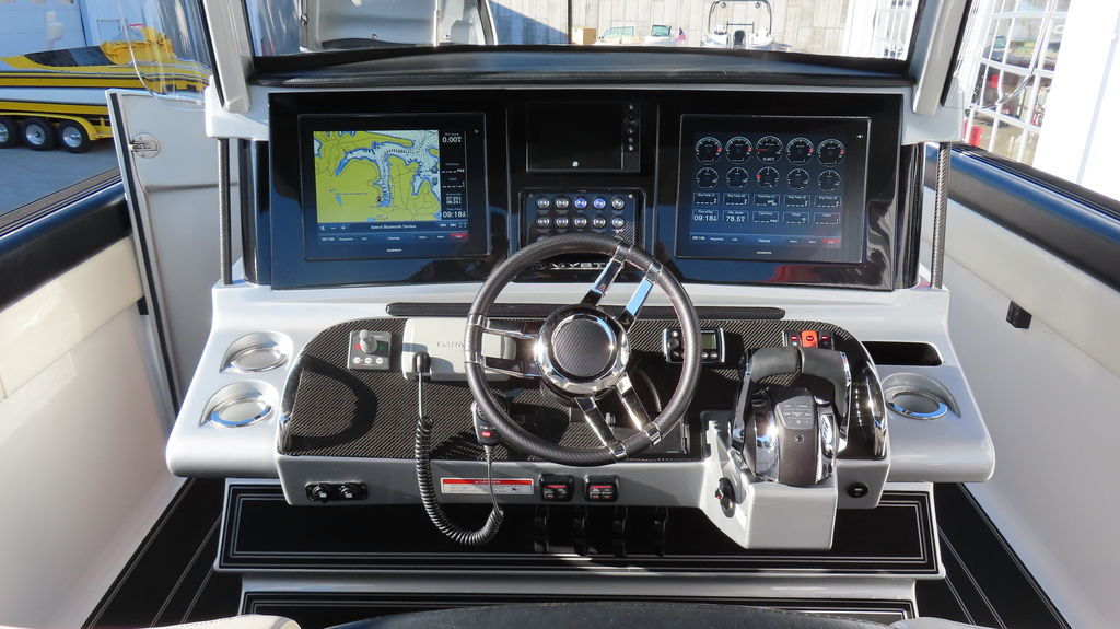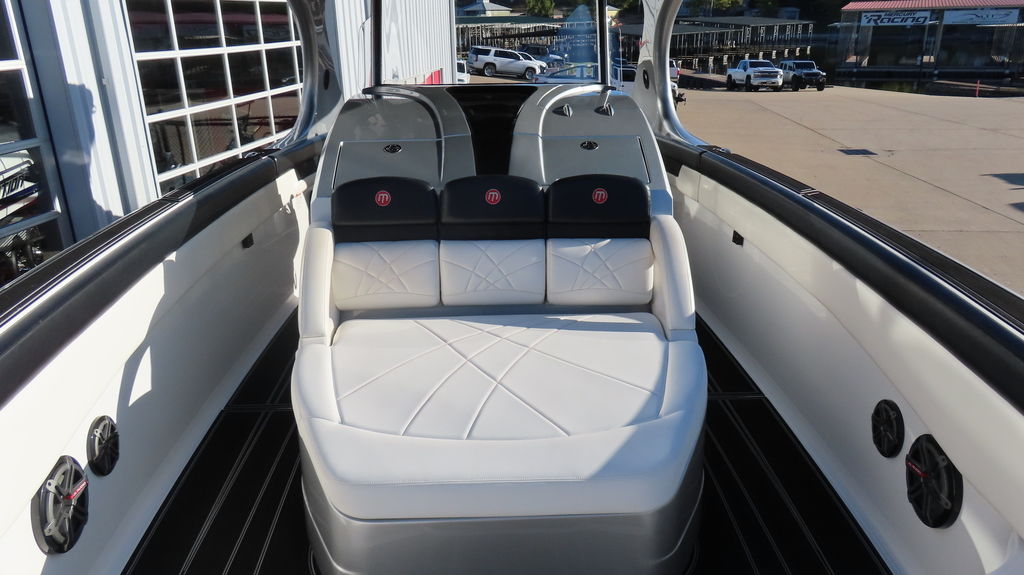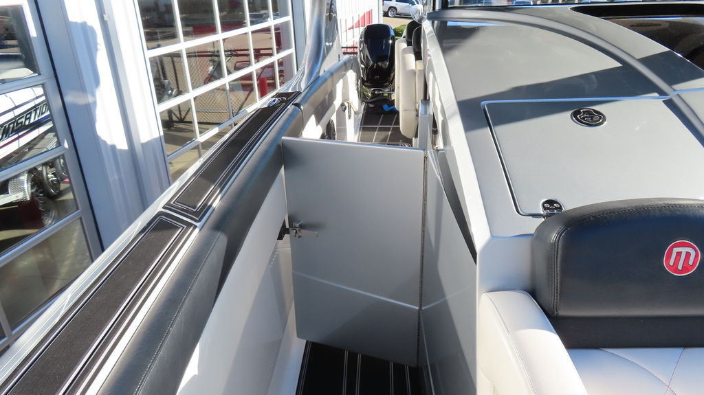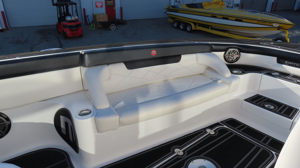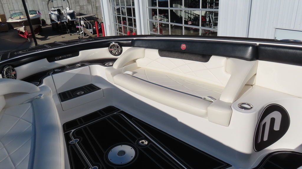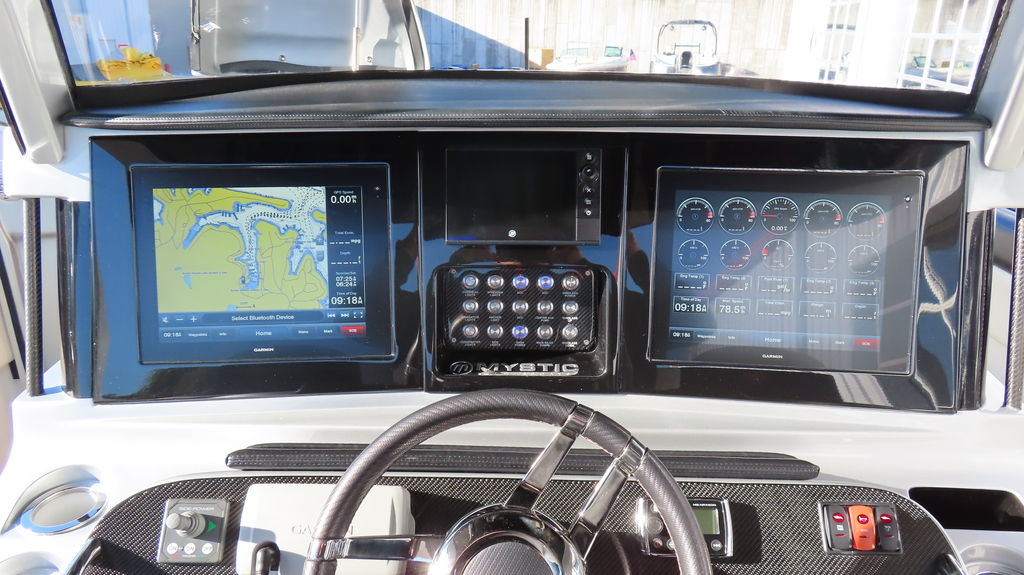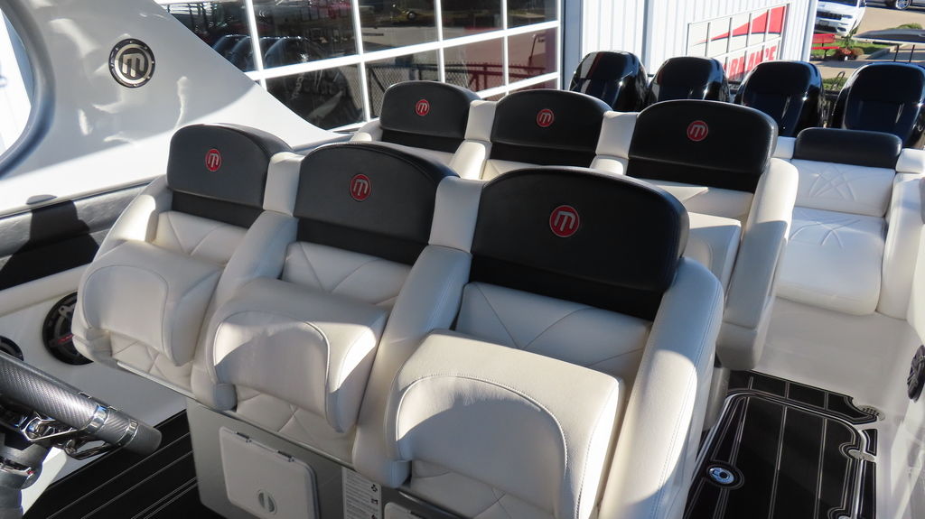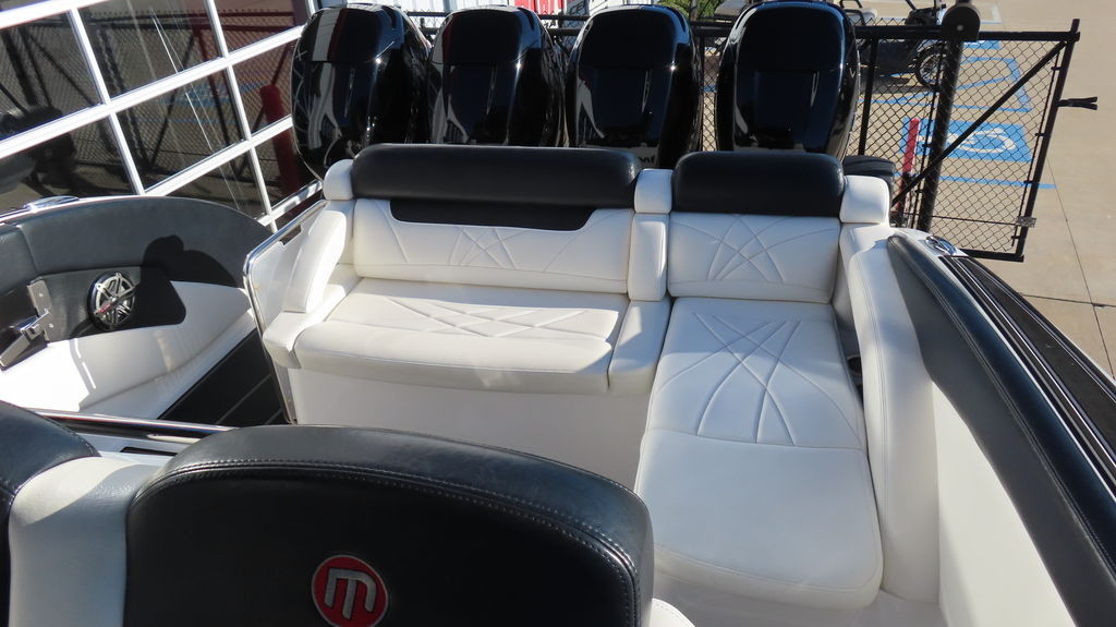 2017 Mystic M4200 powered by Quad Mercury Verado 350, Mercury DTS controls, Mercury vesselview, Trim tabs, (2) Garmin GPS, Bow Thruster, Isotta steering wheel, Sea Deck flooring, Two rows of bolsters, Center Lounge chair, Bow seating, Fusion stereo with helm remote, JL Audio component speakers throughout, Garmin VHF, Gunnel wing doors, Large cabin with flush head, Sink, Refrigerator, seating area, Flat screen TV, Microwave, Billet push button controls, Wash down, Windless anchor, Wireless phone charging, No trailer.