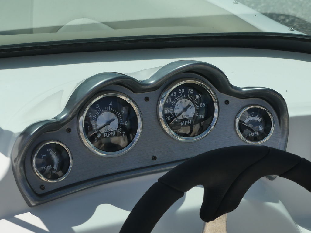 Enjoy the drive and ride of a V-Hull and beach party capacity of a deck style boat with the new generation design of the 223 DC. Runabout styling-deck boat efficient, the 223 DC has it all. Convenience and comfort features include a panoramic wraparound walk-thru windshield, portside mid-ship enclosed dressing room, and “leather touch upholstery”. Some of the construction and design features include 11 drink holders, 7 storage compartments and 100% wood free construction. Top that off with the Infinity® stereo system with 4-waterproof speakers and you will show up to the beach party in comfort and style in the 223 DC.