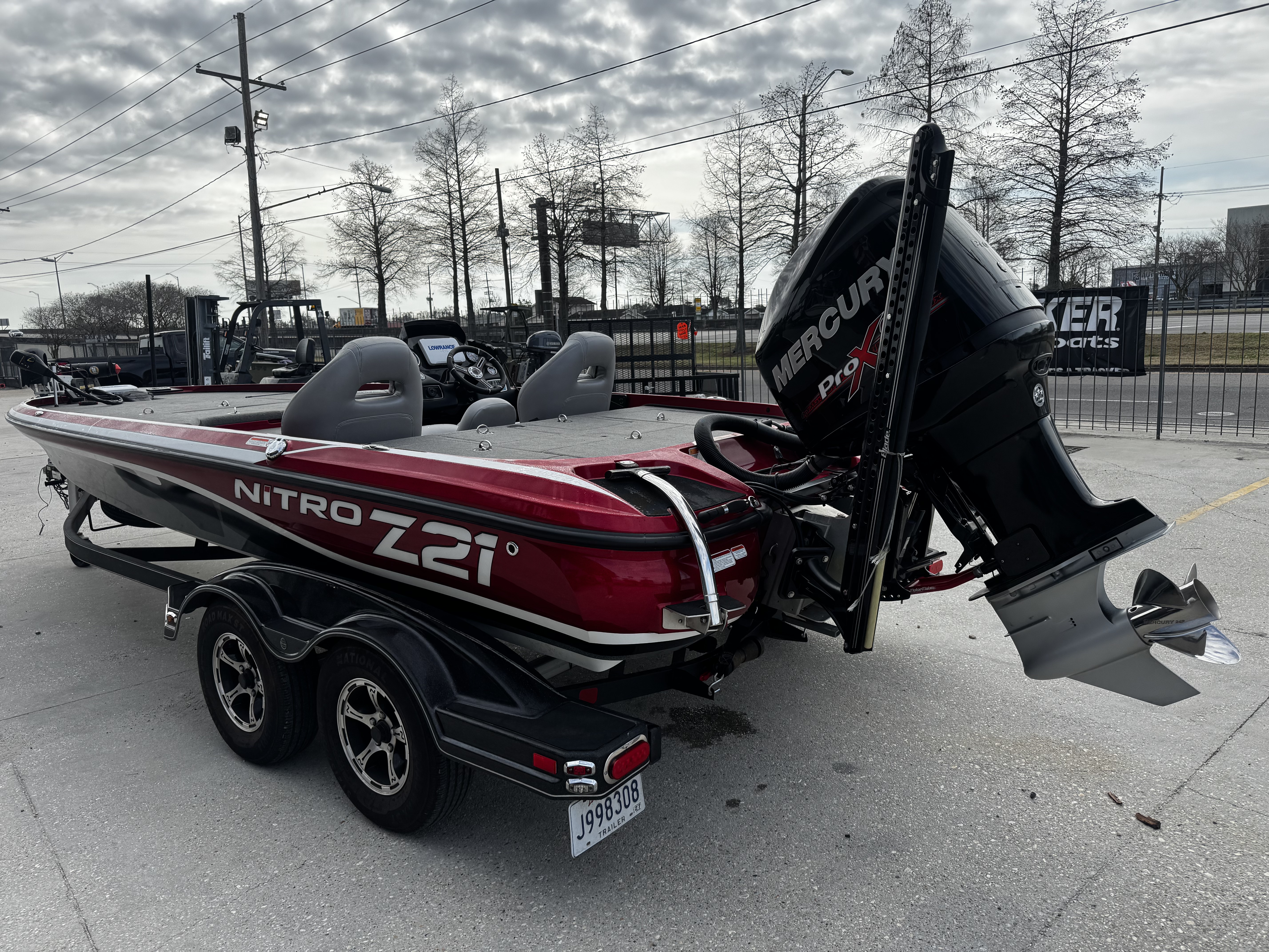 2017 Nitro Z21 powered by a Mercury 250 Pro XS with only 50 hours. This 21’2” flagship bass boat features a wide 95” beam for exceptional stability, massive front and rear casting decks, and abundant storage including oversized rod lockers and tackle compartments. It’s equipped with dual livewells for tournament fishing, a 60-gallon fuel tank for long runs, comfortable bucket seating, and a smooth, dry ride hull designed for both speed and control. The Mercury 250 Pro XS delivers strong hole shot, impressive top-end performance, and proven reliability, and with just 50 hours, it’s barely broken in. Clean, well maintained, and water-ready!