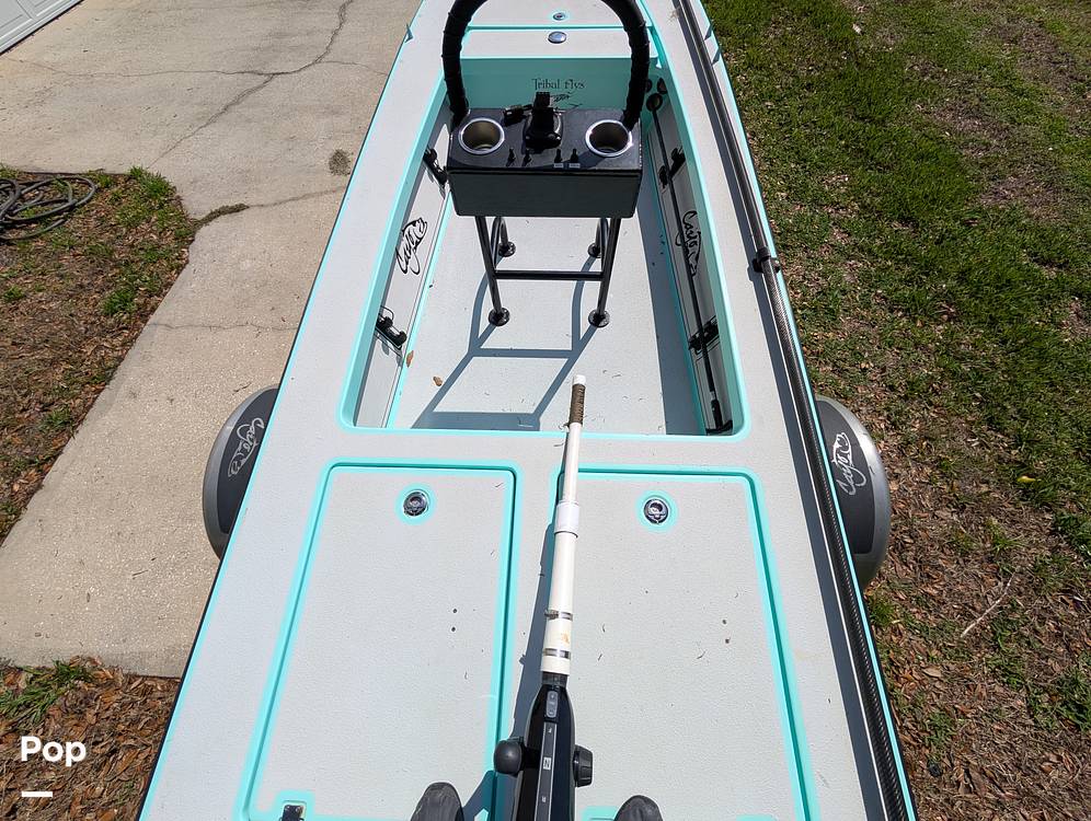 Additional features include an automatic bilge pump, heavy-duty rub rail, and premium stainless flush-mounted hardware throughout the boat, reflecting the quality construction of the Cayo line. The boat will also come with an anchor, 2 spare hubs for the wheels, a spare trailer light kit, and a 19 foot MHX carbon fiber push pole.