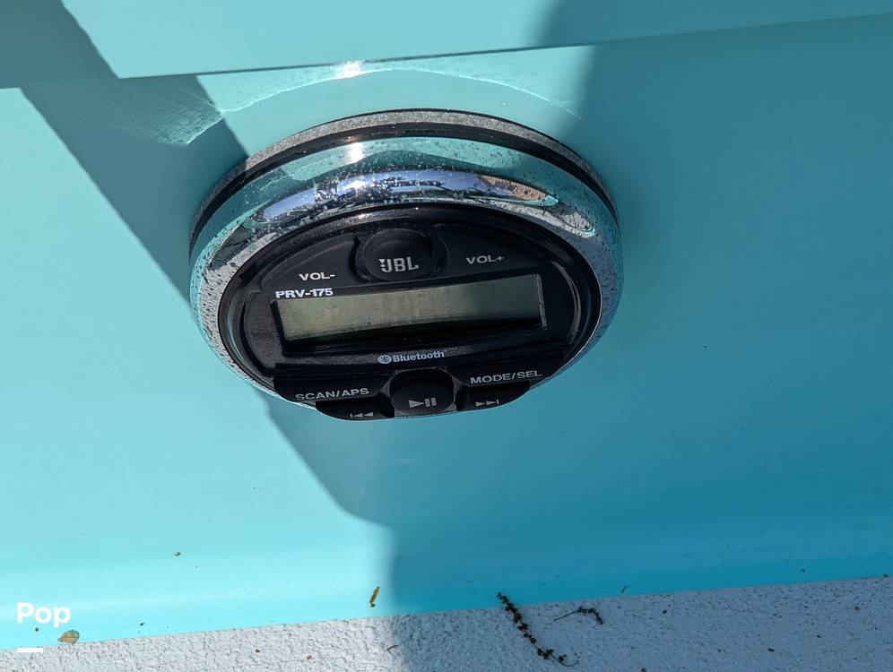 Navigation is handled by a Simrad GO5 GPS, and the boat includes navigation lights for early morning or evening runs. For added enjoyment on the water, there is a built-in JBL stereo system.