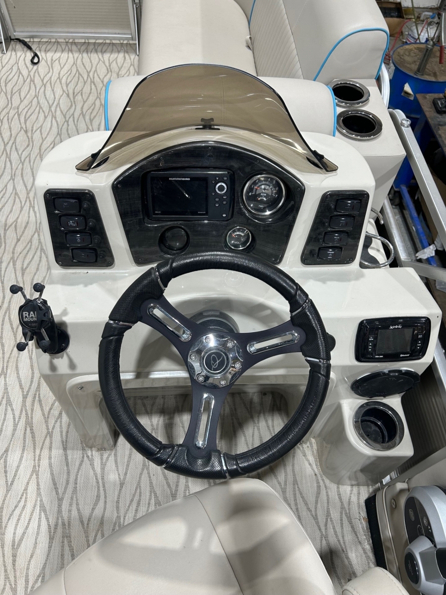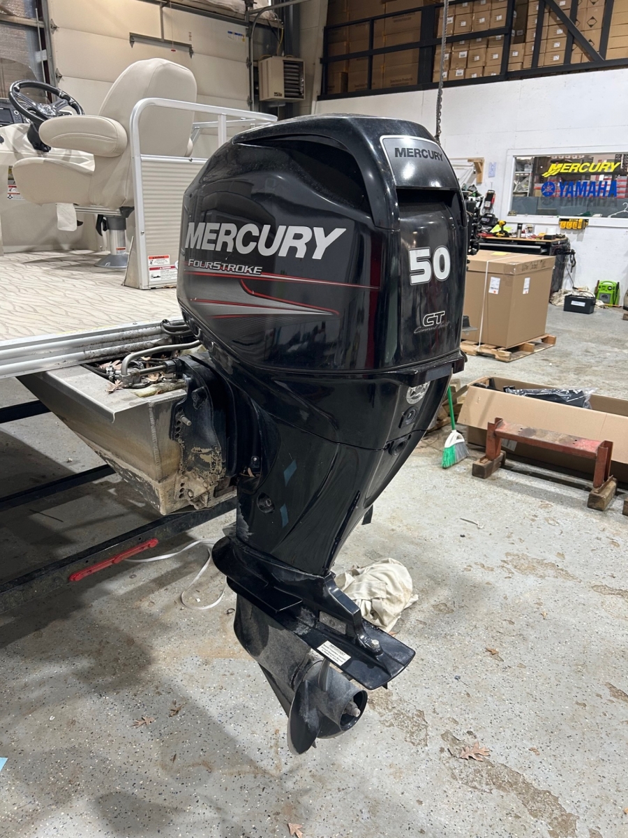 Inspected pontoon with 117 hours.This boat comes powered by a Mercury 50ELPT CT Four stroke and includes:Dash mounted Helix 5Bluetooth stereoTrailer in photos is not includedThis boat is very clean! For additional information call us today at 800-875-2620 and select the location nearest you.