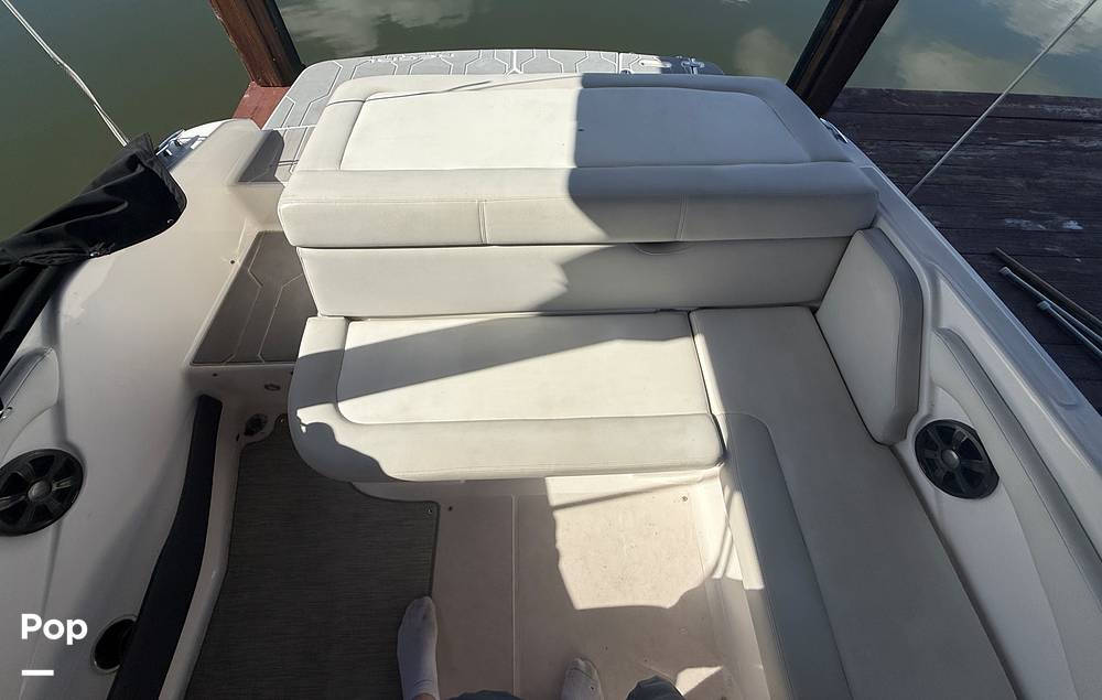 It is equipped with a 200 HP Volvo Penta inboard / outboard engine with 324 hours. It has a Fusion stereo system, swim platform, stern swim ladder, bimini top, anchor locker with anchor, tons of storage, walkthrough windshield and a rear tow point for watersports.