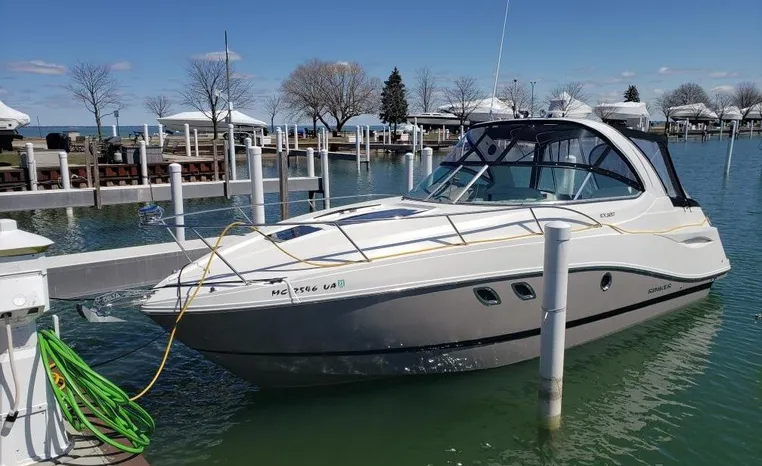 Freshwater / Great Lakes boat since new this vessel features Twin MerCruiser 350-Mag 300-hp Gas Engine's with Bravo III Sterndrives and only 214 original hours. Notable features include but are not limited to the following: Air-Conditioning & Heat (1-Unit), Head (Techna) w/Vanity/Sink/Shower, Built-In Screen Door, Walk Through Windshield, Windlass Anchor, Sun-Pad, Canvas Enclosure w/Forward Poly-Carbonite Windows, Cockpit Wet Bar w/Sink/Refrigerator, Blender, Power Engine Hatch, Raymarine Color NAV-System, Premium Sound System w/Bluetooth, Snap-in Snap-out Cockpit Carpeting (2 Sets), Bow and Stern Thrusters with Remote and MUCH more!