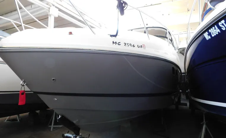 Freshwater / Great Lakes boat since new this vessel features Twin MerCruiser 350-Mag 300-hp Gas Engine's with Bravo III Sterndrives and only 214 original hours. Notable features include but are not limited to the following: Air-Conditioning & Heat (1-Unit), Head (Techna) w/Vanity/Sink/Shower, Built-In Screen Door, Walk Through Windshield, Windlass Anchor, Sun-Pad, Canvas Enclosure w/Forward Poly-Carbonite Windows, Cockpit Wet Bar w/Sink/Refrigerator, Blender, Power Engine Hatch, Raymarine Color NAV-System, Premium Sound System w/Bluetooth, Snap-in Snap-out Cockpit Carpeting (2 Sets), Bow and Stern Thrusters with Remote and MUCH more!