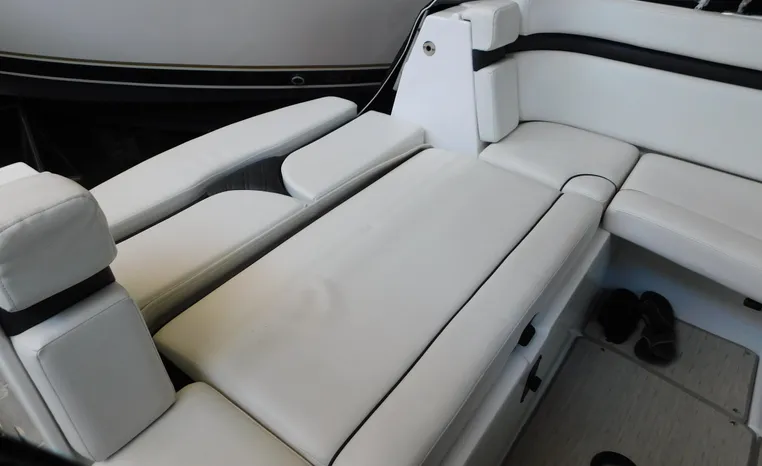 Freshwater / Great Lakes boat since new this vessel features Twin MerCruiser 350-Mag 300-hp Gas Engine's with Bravo III Sterndrives and only 214 original hours. Notable features include but are not limited to the following: Air-Conditioning & Heat (1-Unit), Head (Techna) w/Vanity/Sink/Shower, Built-In Screen Door, Walk Through Windshield, Windlass Anchor, Sun-Pad, Canvas Enclosure w/Forward Poly-Carbonite Windows, Cockpit Wet Bar w/Sink/Refrigerator, Blender, Power Engine Hatch, Raymarine Color NAV-System, Premium Sound System w/Bluetooth, Snap-in Snap-out Cockpit Carpeting (2 Sets), Bow and Stern Thrusters with Remote and MUCH more!