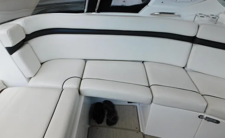 Freshwater / Great Lakes boat since new this vessel features Twin MerCruiser 350-Mag 300-hp Gas Engine's with Bravo III Sterndrives and only 214 original hours. Notable features include but are not limited to the following: Air-Conditioning & Heat (1-Unit), Head (Techna) w/Vanity/Sink/Shower, Built-In Screen Door, Walk Through Windshield, Windlass Anchor, Sun-Pad, Canvas Enclosure w/Forward Poly-Carbonite Windows, Cockpit Wet Bar w/Sink/Refrigerator, Blender, Power Engine Hatch, Raymarine Color NAV-System, Premium Sound System w/Bluetooth, Snap-in Snap-out Cockpit Carpeting (2 Sets), Bow and Stern Thrusters with Remote and MUCH more!
