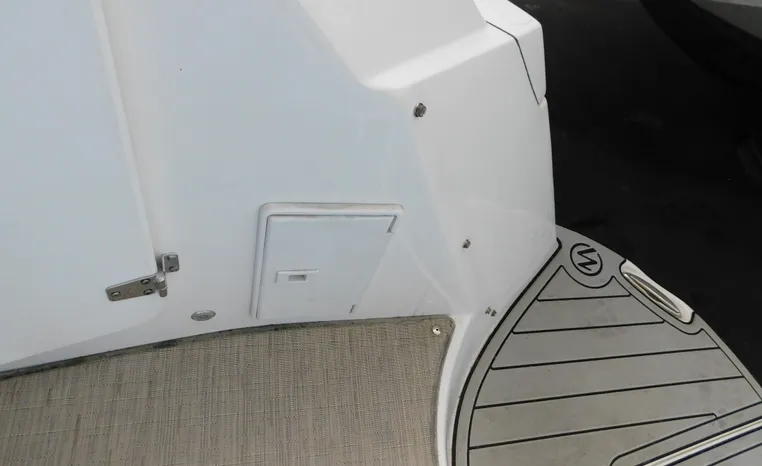 Freshwater / Great Lakes boat since new this vessel features Twin MerCruiser 350-Mag 300-hp Gas Engine's with Bravo III Sterndrives and only 214 original hours. Notable features include but are not limited to the following: Air-Conditioning & Heat (1-Unit), Head (Techna) w/Vanity/Sink/Shower, Built-In Screen Door, Walk Through Windshield, Windlass Anchor, Sun-Pad, Canvas Enclosure w/Forward Poly-Carbonite Windows, Cockpit Wet Bar w/Sink/Refrigerator, Blender, Power Engine Hatch, Raymarine Color NAV-System, Premium Sound System w/Bluetooth, Snap-in Snap-out Cockpit Carpeting (2 Sets), Bow and Stern Thrusters with Remote and MUCH more!