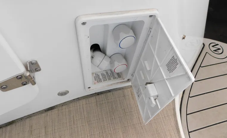 Freshwater / Great Lakes boat since new this vessel features Twin MerCruiser 350-Mag 300-hp Gas Engine's with Bravo III Sterndrives and only 214 original hours. Notable features include but are not limited to the following: Air-Conditioning & Heat (1-Unit), Head (Techna) w/Vanity/Sink/Shower, Built-In Screen Door, Walk Through Windshield, Windlass Anchor, Sun-Pad, Canvas Enclosure w/Forward Poly-Carbonite Windows, Cockpit Wet Bar w/Sink/Refrigerator, Blender, Power Engine Hatch, Raymarine Color NAV-System, Premium Sound System w/Bluetooth, Snap-in Snap-out Cockpit Carpeting (2 Sets), Bow and Stern Thrusters with Remote and MUCH more!
