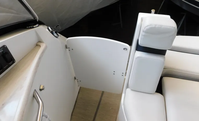 Freshwater / Great Lakes boat since new this vessel features Twin MerCruiser 350-Mag 300-hp Gas Engine's with Bravo III Sterndrives and only 214 original hours. Notable features include but are not limited to the following: Air-Conditioning & Heat (1-Unit), Head (Techna) w/Vanity/Sink/Shower, Built-In Screen Door, Walk Through Windshield, Windlass Anchor, Sun-Pad, Canvas Enclosure w/Forward Poly-Carbonite Windows, Cockpit Wet Bar w/Sink/Refrigerator, Blender, Power Engine Hatch, Raymarine Color NAV-System, Premium Sound System w/Bluetooth, Snap-in Snap-out Cockpit Carpeting (2 Sets), Bow and Stern Thrusters with Remote and MUCH more!