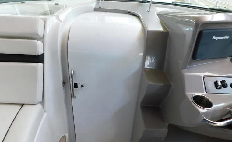 Freshwater / Great Lakes boat since new this vessel features Twin MerCruiser 350-Mag 300-hp Gas Engine's with Bravo III Sterndrives and only 214 original hours. Notable features include but are not limited to the following: Air-Conditioning & Heat (1-Unit), Head (Techna) w/Vanity/Sink/Shower, Built-In Screen Door, Walk Through Windshield, Windlass Anchor, Sun-Pad, Canvas Enclosure w/Forward Poly-Carbonite Windows, Cockpit Wet Bar w/Sink/Refrigerator, Blender, Power Engine Hatch, Raymarine Color NAV-System, Premium Sound System w/Bluetooth, Snap-in Snap-out Cockpit Carpeting (2 Sets), Bow and Stern Thrusters with Remote and MUCH more!