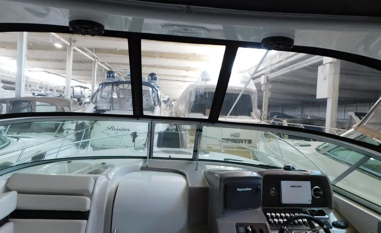 Freshwater / Great Lakes boat since new this vessel features Twin MerCruiser 350-Mag 300-hp Gas Engine's with Bravo III Sterndrives and only 214 original hours. Notable features include but are not limited to the following: Air-Conditioning & Heat (1-Unit), Head (Techna) w/Vanity/Sink/Shower, Built-In Screen Door, Walk Through Windshield, Windlass Anchor, Sun-Pad, Canvas Enclosure w/Forward Poly-Carbonite Windows, Cockpit Wet Bar w/Sink/Refrigerator, Blender, Power Engine Hatch, Raymarine Color NAV-System, Premium Sound System w/Bluetooth, Snap-in Snap-out Cockpit Carpeting (2 Sets), Bow and Stern Thrusters with Remote and MUCH more!