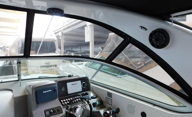 Freshwater / Great Lakes boat since new this vessel features Twin MerCruiser 350-Mag 300-hp Gas Engine's with Bravo III Sterndrives and only 214 original hours. Notable features include but are not limited to the following: Air-Conditioning & Heat (1-Unit), Head (Techna) w/Vanity/Sink/Shower, Built-In Screen Door, Walk Through Windshield, Windlass Anchor, Sun-Pad, Canvas Enclosure w/Forward Poly-Carbonite Windows, Cockpit Wet Bar w/Sink/Refrigerator, Blender, Power Engine Hatch, Raymarine Color NAV-System, Premium Sound System w/Bluetooth, Snap-in Snap-out Cockpit Carpeting (2 Sets), Bow and Stern Thrusters with Remote and MUCH more!