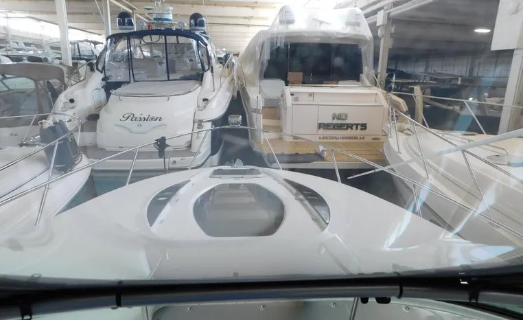 Freshwater / Great Lakes boat since new this vessel features Twin MerCruiser 350-Mag 300-hp Gas Engine's with Bravo III Sterndrives and only 214 original hours. Notable features include but are not limited to the following: Air-Conditioning & Heat (1-Unit), Head (Techna) w/Vanity/Sink/Shower, Built-In Screen Door, Walk Through Windshield, Windlass Anchor, Sun-Pad, Canvas Enclosure w/Forward Poly-Carbonite Windows, Cockpit Wet Bar w/Sink/Refrigerator, Blender, Power Engine Hatch, Raymarine Color NAV-System, Premium Sound System w/Bluetooth, Snap-in Snap-out Cockpit Carpeting (2 Sets), Bow and Stern Thrusters with Remote and MUCH more!