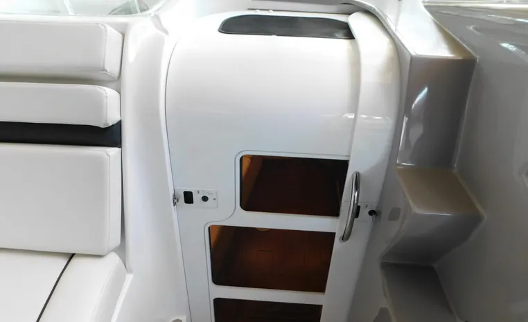 Freshwater / Great Lakes boat since new this vessel features Twin MerCruiser 350-Mag 300-hp Gas Engine's with Bravo III Sterndrives and only 214 original hours. Notable features include but are not limited to the following: Air-Conditioning & Heat (1-Unit), Head (Techna) w/Vanity/Sink/Shower, Built-In Screen Door, Walk Through Windshield, Windlass Anchor, Sun-Pad, Canvas Enclosure w/Forward Poly-Carbonite Windows, Cockpit Wet Bar w/Sink/Refrigerator, Blender, Power Engine Hatch, Raymarine Color NAV-System, Premium Sound System w/Bluetooth, Snap-in Snap-out Cockpit Carpeting (2 Sets), Bow and Stern Thrusters with Remote and MUCH more!