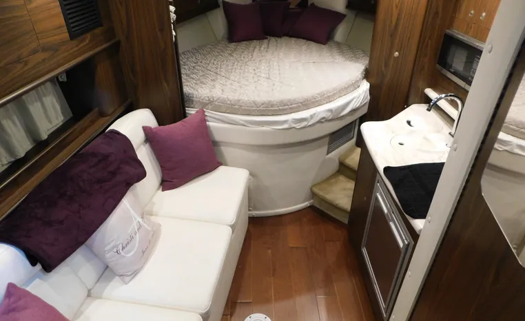 Freshwater / Great Lakes boat since new this vessel features Twin MerCruiser 350-Mag 300-hp Gas Engine's with Bravo III Sterndrives and only 214 original hours. Notable features include but are not limited to the following: Air-Conditioning & Heat (1-Unit), Head (Techna) w/Vanity/Sink/Shower, Built-In Screen Door, Walk Through Windshield, Windlass Anchor, Sun-Pad, Canvas Enclosure w/Forward Poly-Carbonite Windows, Cockpit Wet Bar w/Sink/Refrigerator, Blender, Power Engine Hatch, Raymarine Color NAV-System, Premium Sound System w/Bluetooth, Snap-in Snap-out Cockpit Carpeting (2 Sets), Bow and Stern Thrusters with Remote and MUCH more!