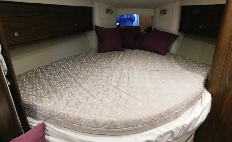 Freshwater / Great Lakes boat since new this vessel features Twin MerCruiser 350-Mag 300-hp Gas Engine's with Bravo III Sterndrives and only 214 original hours. Notable features include but are not limited to the following: Air-Conditioning & Heat (1-Unit), Head (Techna) w/Vanity/Sink/Shower, Built-In Screen Door, Walk Through Windshield, Windlass Anchor, Sun-Pad, Canvas Enclosure w/Forward Poly-Carbonite Windows, Cockpit Wet Bar w/Sink/Refrigerator, Blender, Power Engine Hatch, Raymarine Color NAV-System, Premium Sound System w/Bluetooth, Snap-in Snap-out Cockpit Carpeting (2 Sets), Bow and Stern Thrusters with Remote and MUCH more!