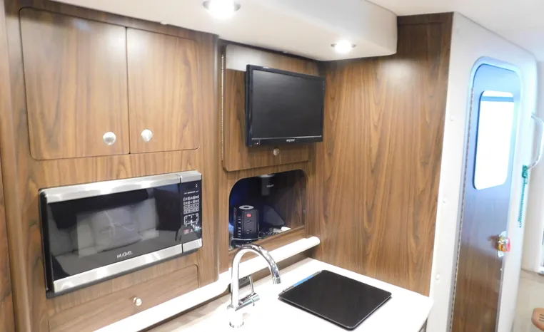 Freshwater / Great Lakes boat since new this vessel features Twin MerCruiser 350-Mag 300-hp Gas Engine's with Bravo III Sterndrives and only 214 original hours. Notable features include but are not limited to the following: Air-Conditioning & Heat (1-Unit), Head (Techna) w/Vanity/Sink/Shower, Built-In Screen Door, Walk Through Windshield, Windlass Anchor, Sun-Pad, Canvas Enclosure w/Forward Poly-Carbonite Windows, Cockpit Wet Bar w/Sink/Refrigerator, Blender, Power Engine Hatch, Raymarine Color NAV-System, Premium Sound System w/Bluetooth, Snap-in Snap-out Cockpit Carpeting (2 Sets), Bow and Stern Thrusters with Remote and MUCH more!