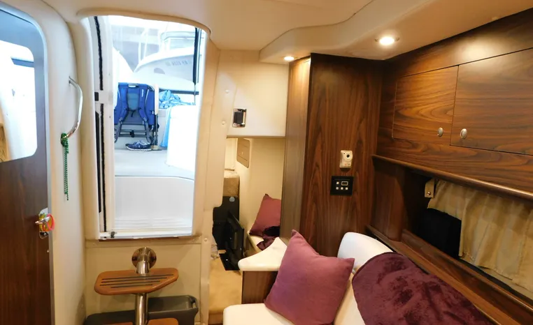 Freshwater / Great Lakes boat since new this vessel features Twin MerCruiser 350-Mag 300-hp Gas Engine's with Bravo III Sterndrives and only 214 original hours. Notable features include but are not limited to the following: Air-Conditioning & Heat (1-Unit), Head (Techna) w/Vanity/Sink/Shower, Built-In Screen Door, Walk Through Windshield, Windlass Anchor, Sun-Pad, Canvas Enclosure w/Forward Poly-Carbonite Windows, Cockpit Wet Bar w/Sink/Refrigerator, Blender, Power Engine Hatch, Raymarine Color NAV-System, Premium Sound System w/Bluetooth, Snap-in Snap-out Cockpit Carpeting (2 Sets), Bow and Stern Thrusters with Remote and MUCH more!